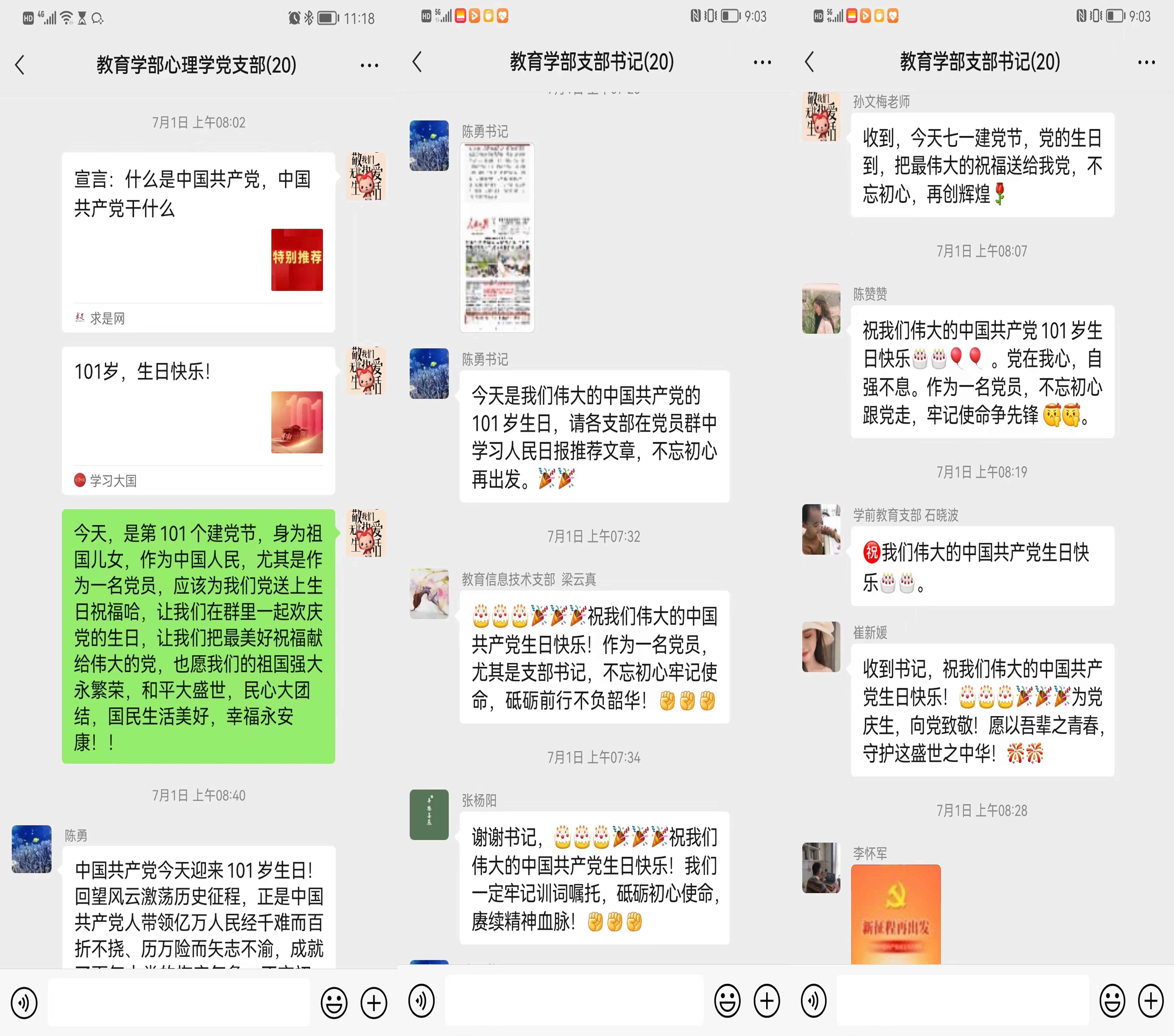 在七一建党节来临之际,教育学部各党支部开展“庆七一·我把祝福献给党”主题党日活动,热烈庆祝中国共产党建党101周年。