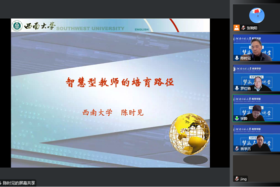 2022年12月1日,西南大学副校长陈时见教授应邀做客我校教育学部“梦瀛名家讲堂”,作题为“智慧型教师的培育路径”学术报告。报告会通过线上方式进行,由副校长宋晔教授主持。教育学部负责人、部分教师及研究生300人共同聆听了此次报告。