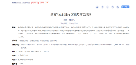 1. 宋晔,曹琦飞. 道德利他的生发逻辑及现实超越[J]. 教育发展研究,2022,42(Z2):63-72.