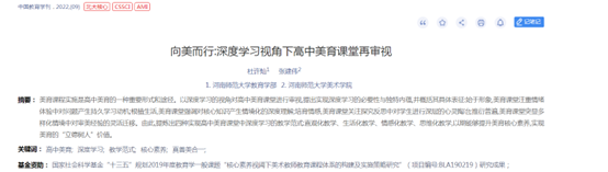 9. 杜许灿,张建伟. 向美而行:深度学习视角下高中美育课堂再审视[J]. 中国教育学刊,2022,(09):65-69.
