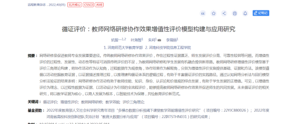 7. 炕留一,叶海智,朱珂,李瑞丽. 循证评价:教师网络研修协作效果增值性评价模型构建与应用研究[J]. 远程教育杂志,2022,40(05):62-71.