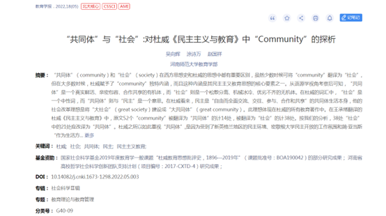 2. 吴向辉,涂诗万,赵国祥. “共同体”与“社会”:对杜威《民主主义与教育》中“Community”的探析[J]. 教育学报,2022,18(05):31-43.
