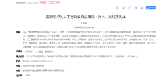 3. 王春丽. 国际组织的人工智能教育应用观:技术、实践及挑战[J].比较教育研究,2022,44(10):86-93+102.