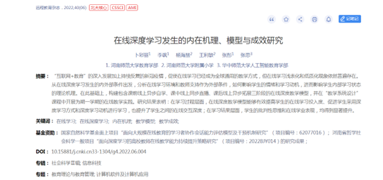 5. 卜彩丽,李飒,杨海慧,王利敏,张彤,张思. 在线深度学习发生的内在机理、模型与成效研究[J]. 远程教育杂志,2022,40(06):65-73.
