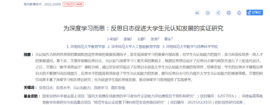 8. 卜彩丽,李飒,王静,张思,董乐. 为深度学习而思:反思日志促进大学生元认知发展的实证研究[J]. 现代教育技术,2022,32(09):73-81.
