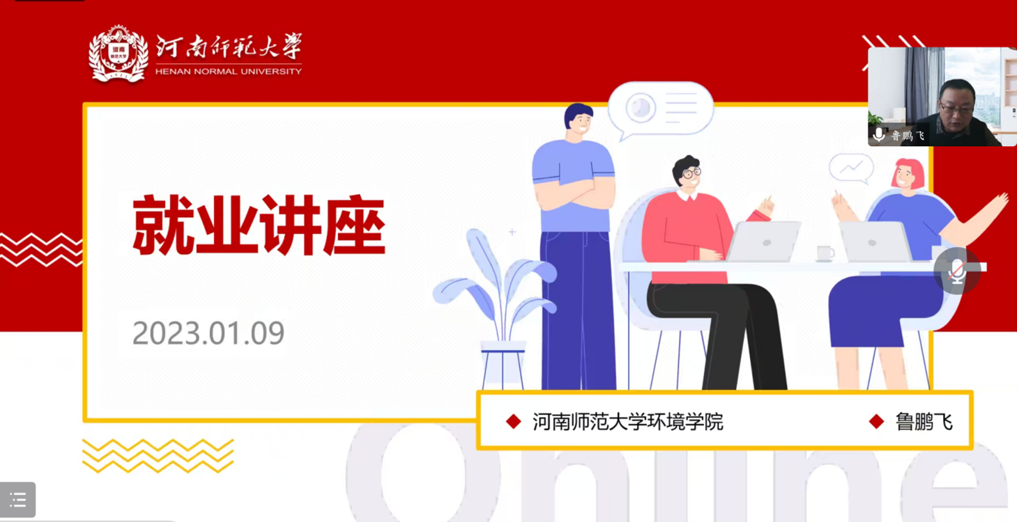 为帮助毕业生进一步了解就业形势,树立良好的就业观念,1月9日下午,教育学部邀请我校环境学院副书记鲁鹏飞,通过线上会议的形式为学部2023届毕业生开展就业指导专题培训讲座。讲座由学部党委副书记康淑霞主持。