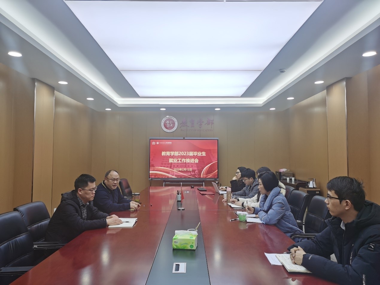 为更好研判就业形势、采取有效措施,保障2023届毕业生顺利就业,2月12日上午,教育学部在田家炳教育书院801会议室召开2023届毕业生就业工作推进会,学部党委书记陈勇、部长罗红艳、党委副书记康淑霞、各年级辅导员及其他相关老师参加会议。