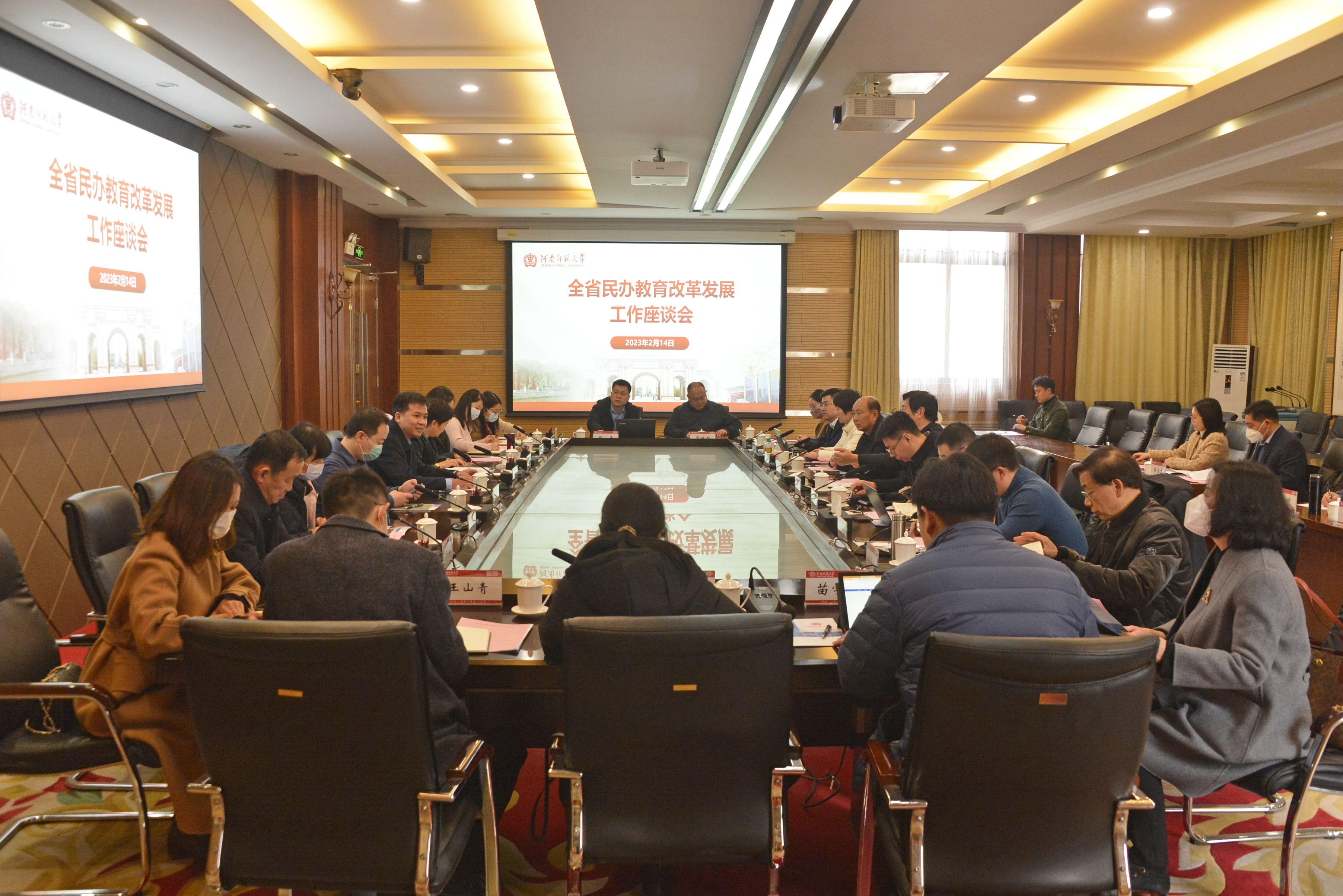 徐军保介绍了全省民办教育改革发展的相关工作,指出要认真落实党的二十大精神,引导规范民办教育发展,稳妥推进民办高校分类管理工作。各参会单位就民办高校分类登记和管理的意义、制约民办教育改革推进的瓶颈问题等进行了深入的交流互动。
