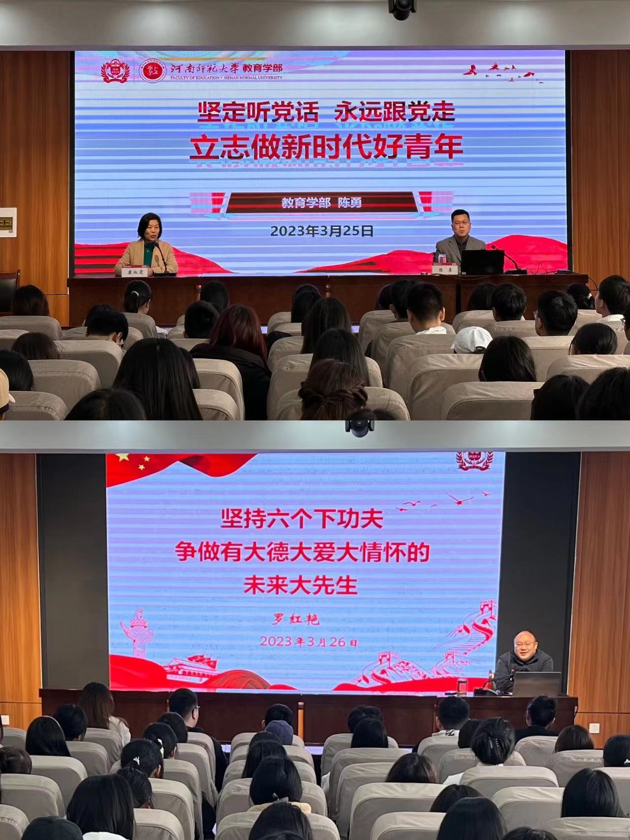 为深入学习贯彻习近平新时代中国特色社会主义思想和党的二十大精神,进一步加强大学生思想政治教育,全面落实立德树人根本任务,3月25日下午和3月26日上午,学部党委书记陈勇、学部部长罗红艳先后在田家炳教育书院819会议室为学生讲授思政第一课。