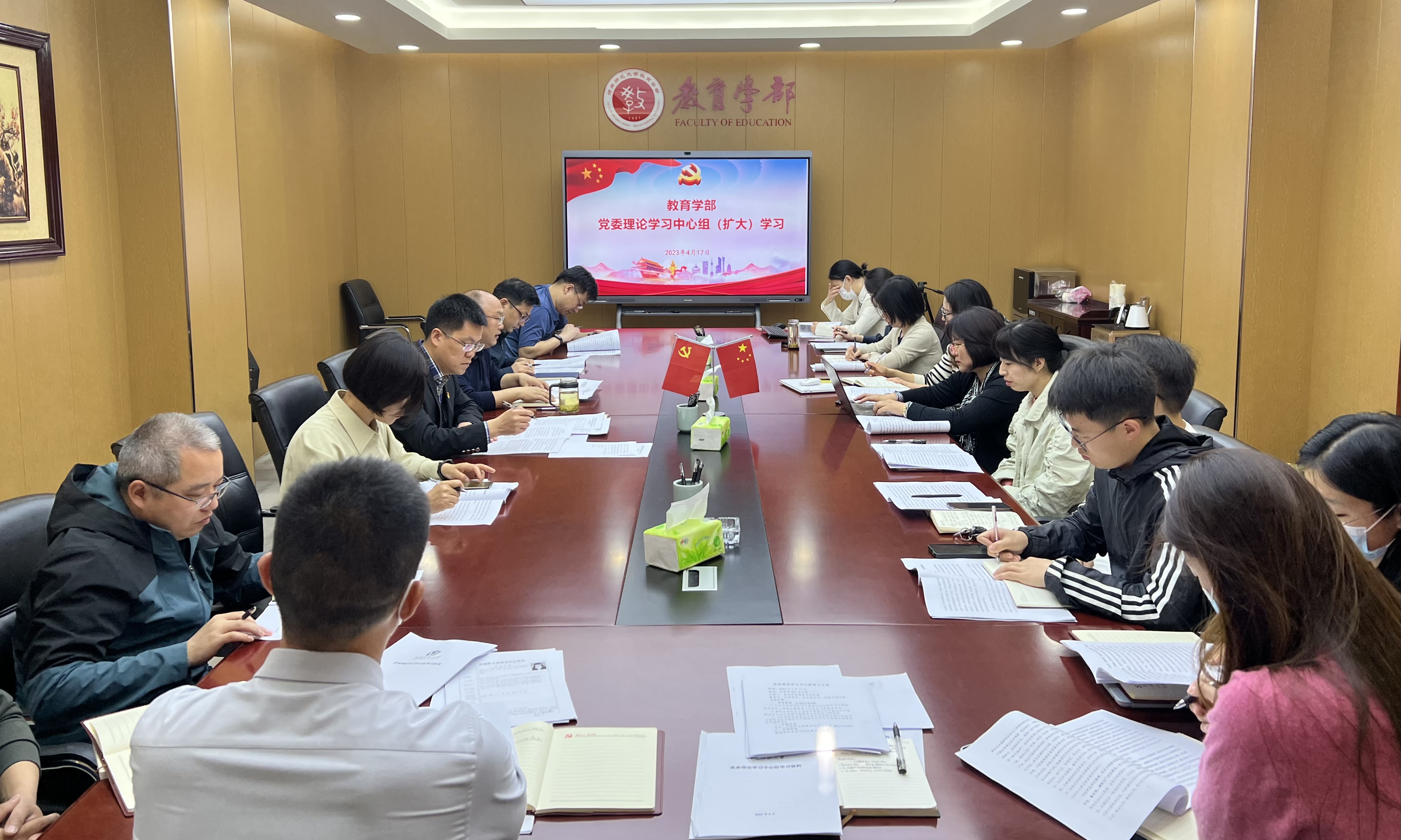 4月17日上午,教育学部在田家炳教育书院801会议室召开党委理论学习中心组(扩大)专题会议,深入学习领会习近平总书记在学习贯彻习近平新时代中国特色社会主义思想主题教育工作会议上的重要讲话精神,学部领导班子、党委委员、各党支部书记、科级干部代表参加学习,学部党委书记陈勇主持会议。