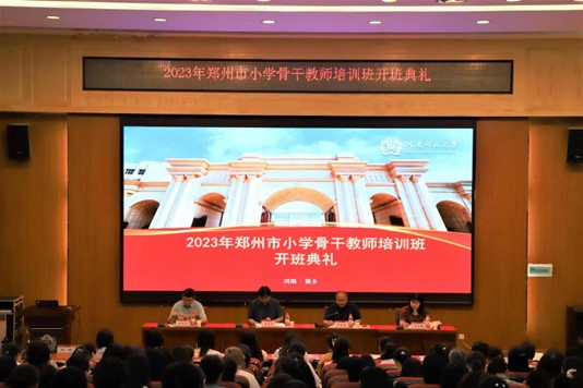 7月7日上午,郑州市小学骨干教师培训班在河南师范大学求是中楼302教室举行开班仪式,郑州市教育局师训处处长李迎军、河南师范大学教育学部部长罗红艳、河南师范大学继续教育学院副院长翟炎杰、郑州市教育局师训处主任孔令婕出席开班仪式,来自郑州市的273名小学骨干教师参加开班仪式。开班仪式由河南师范大学继续教育学院副院长翟炎杰主持。