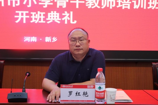 河南师范大学教育学部罗红艳部长致辞,罗红艳部长对郑州市小学骨干教师的到来表示热烈欢迎,对郑州市教育局领导关注教师成长、重视教师培训表示感谢,希望各位学员满载而归。