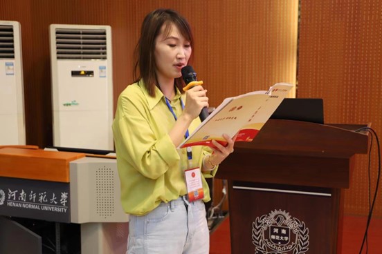 郑州师范学院附属小学教师张琦老师作为学员代表进行发言,张琦老师代表全体学员对关心教师成长的郑州市教育的领导以及承办本次培训工作的河南师范大学的老师们致以崇高的敬意和衷心的感谢,并激励学员们认真学习。