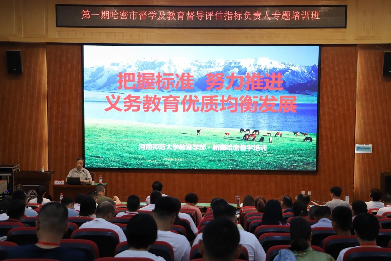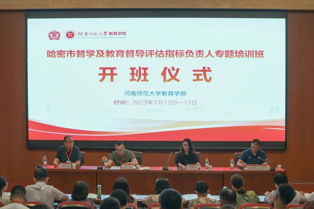 7月13日上午,由河南师范大学教育学部承办的哈密市督学及教育督导评估指标负责人专题培训班在河南师范大学正式开班。哈密市教育局督导科科长万刚、伊吾县教育局局长张在普,河南师范大学教育学部副部长卜彩丽、培训办公室主任彭小洪,哈密市督学及教育督导评估指标负责人81人参加开班仪式。仪式由彭小洪主任主持。
