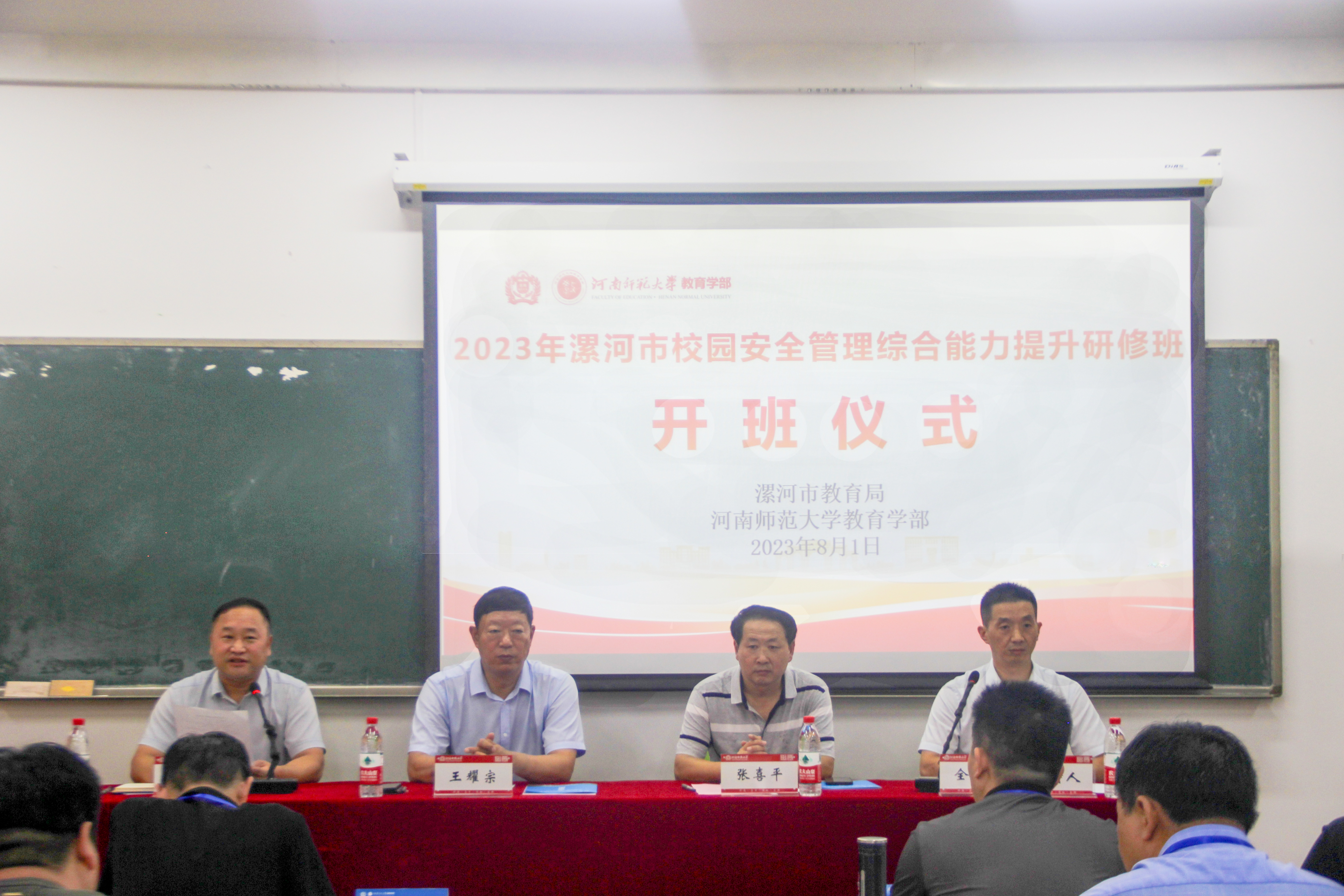 8月1日上午,由河南师范大学教育学部承办的漯河市校园安全管理综合能力提升研修班正式开班。漯河市教育局党组成员、副局长王耀宗,漯河市教育局安全管理科科长张超,河南师范大学继续教育学院党委书记张喜平,漯河市学校安全管理工作骨干65人参加开班仪式。