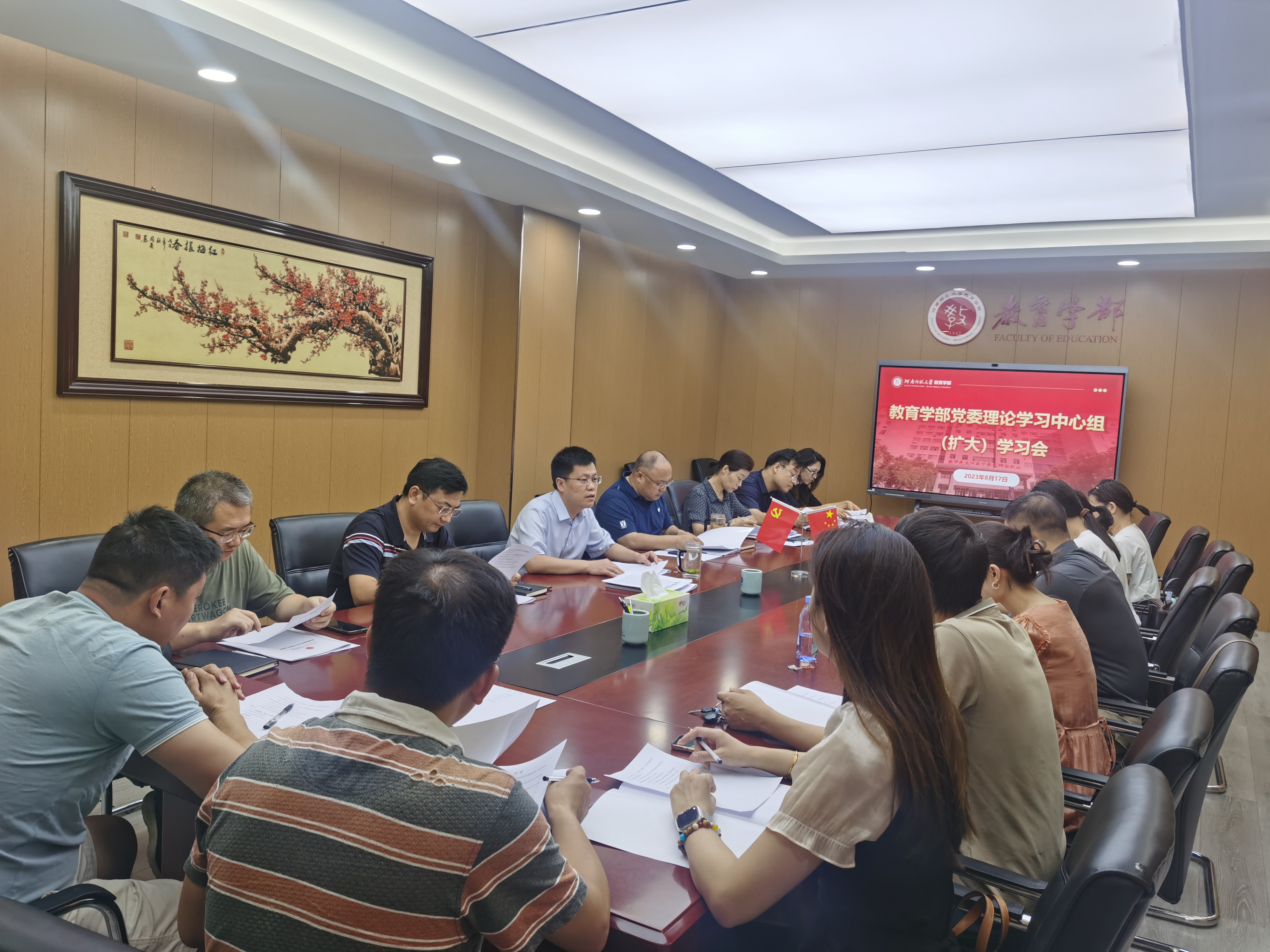 8月17日上午,教育学部在田家炳教育书院801会议室召开党委理论学习中心组(扩大)学习会,深入学习领会习近平总书记关于党的建设的重要思想、习近平总书记近期重要讲话等内容,开展交流研讨,为开好主题教育专题民主生活会打牢思想基础。学部领导班子、党委委员、各党支部书记参加学习,学部党委书记陈勇主持会议。