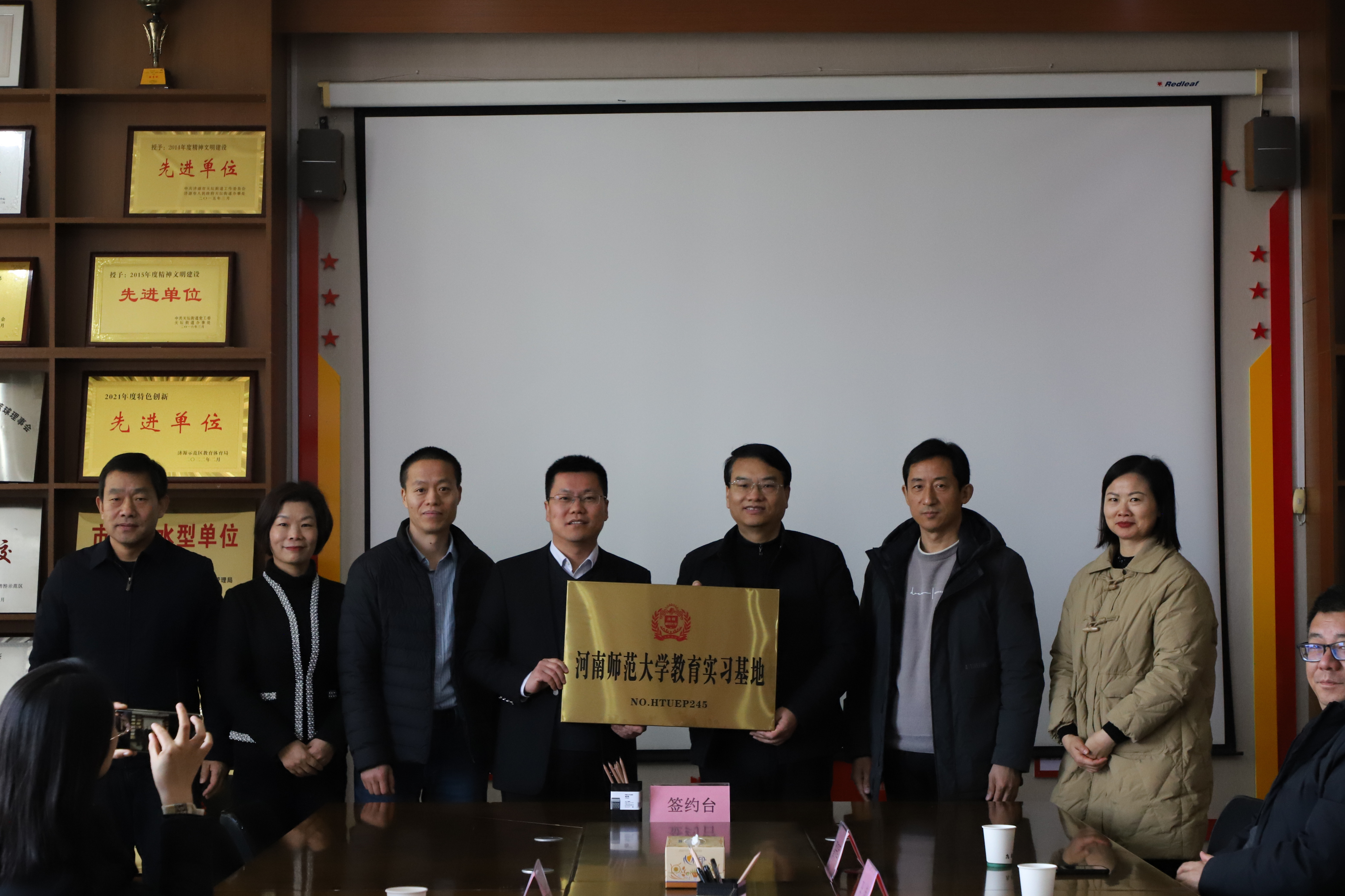在济源市太行路学校,举行河南师范大学与济源示范区教育体育局关于建立教育实习基地签约授牌仪式。济源示范区教育体育局党组成员、副局长任备战在仪式上致辞,他希望通过教育实习基地建设,让更多师范生到济源教育实习基地实习锻炼,让河南师大更多专家教授来济讲学指导,推动地方师资水平和教育现代化能力提升。陈勇介绍了我校的基本情况和办学效益,期待通过在济源建设教育实践基地,探索建立健全“U-G-S”联动发展机制,实现河师大与济源基础教育之间协同育人,联动发展,为社会培养更多高素质专业化创新型师范人才。