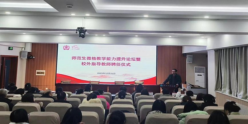 12月21日晚,“教育学部师范生微格教学能力提升论坛暨校外指导老师聘任仪式”在田家炳819召开。教育学部副部长肖广军、副部长卜彩丽、微格教学校内外指导教师以及学生代表共计100余人参与本次论坛。会议由教师教育学院副院长荆菁主持。