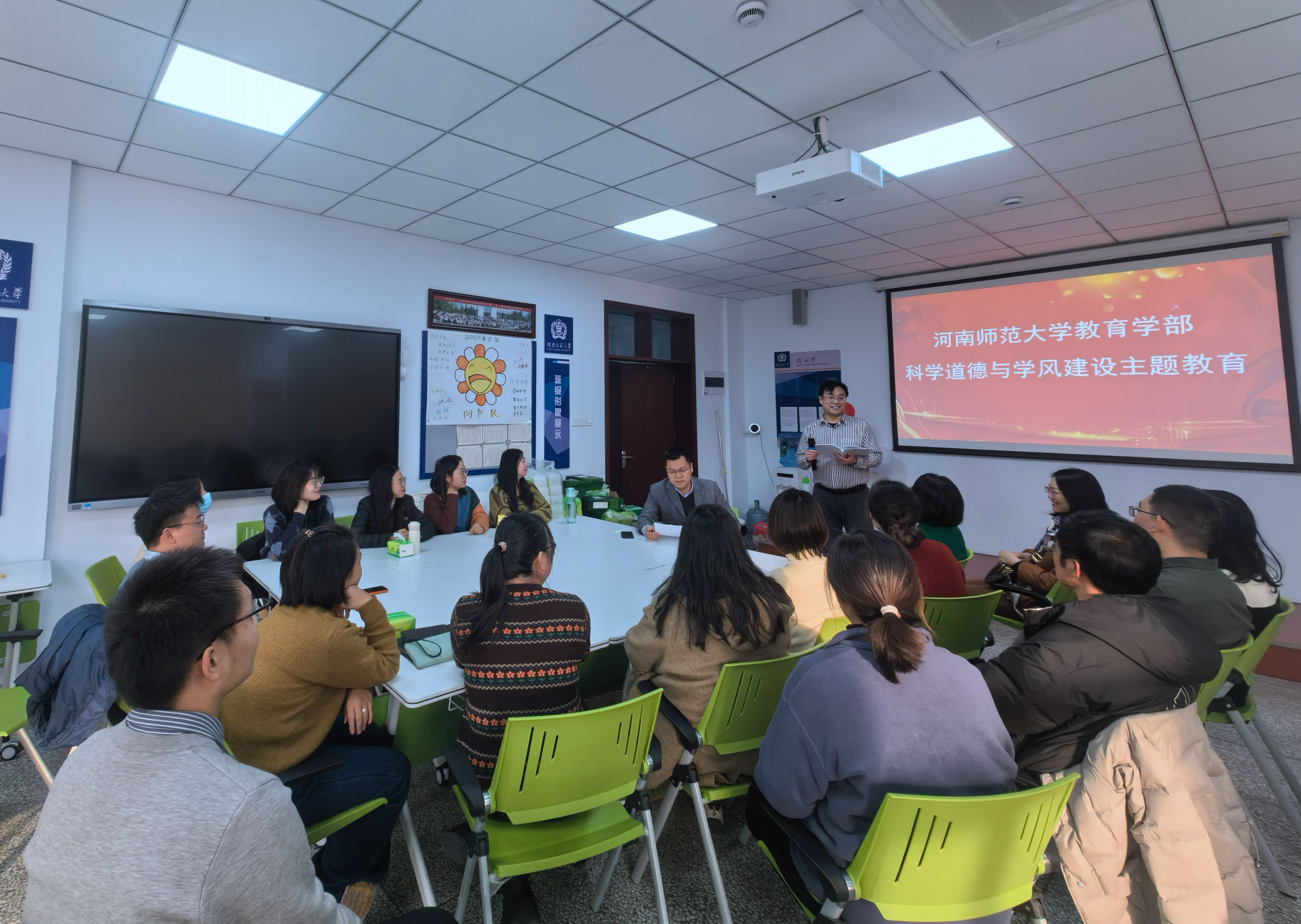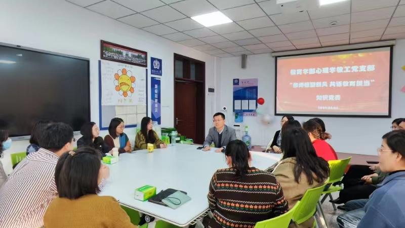 为响应我校“科学道德与学风建设主题教育”宣传周活动,1月7日下午教育学部心理学教工党支部开展“修师德塑新风,共话教育担当”师德师风主题党日活动,以集中学习和知识竞赛形式,进一步增强教师对学术道德、学风建设和师德师风的重视,活动由心理学教工党支部书记、院长刘小先主持。