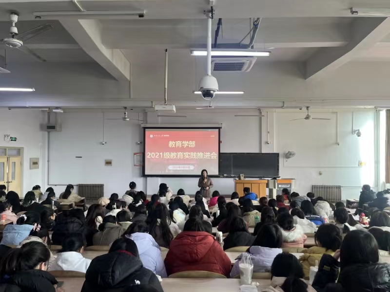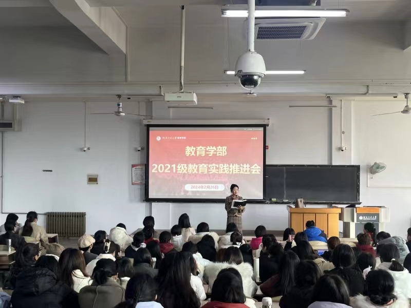 为确保教育实践工作的顺利开展,2月26日上午,教育学部在新五五四教学楼202教室开展2021级师范生教育实践推进会。教育学部党委副书记康淑霞、副部长卜彩丽、实习指导老师及2021级全体本科生参加会议。会议由2021级辅导员陈赞赞主持。