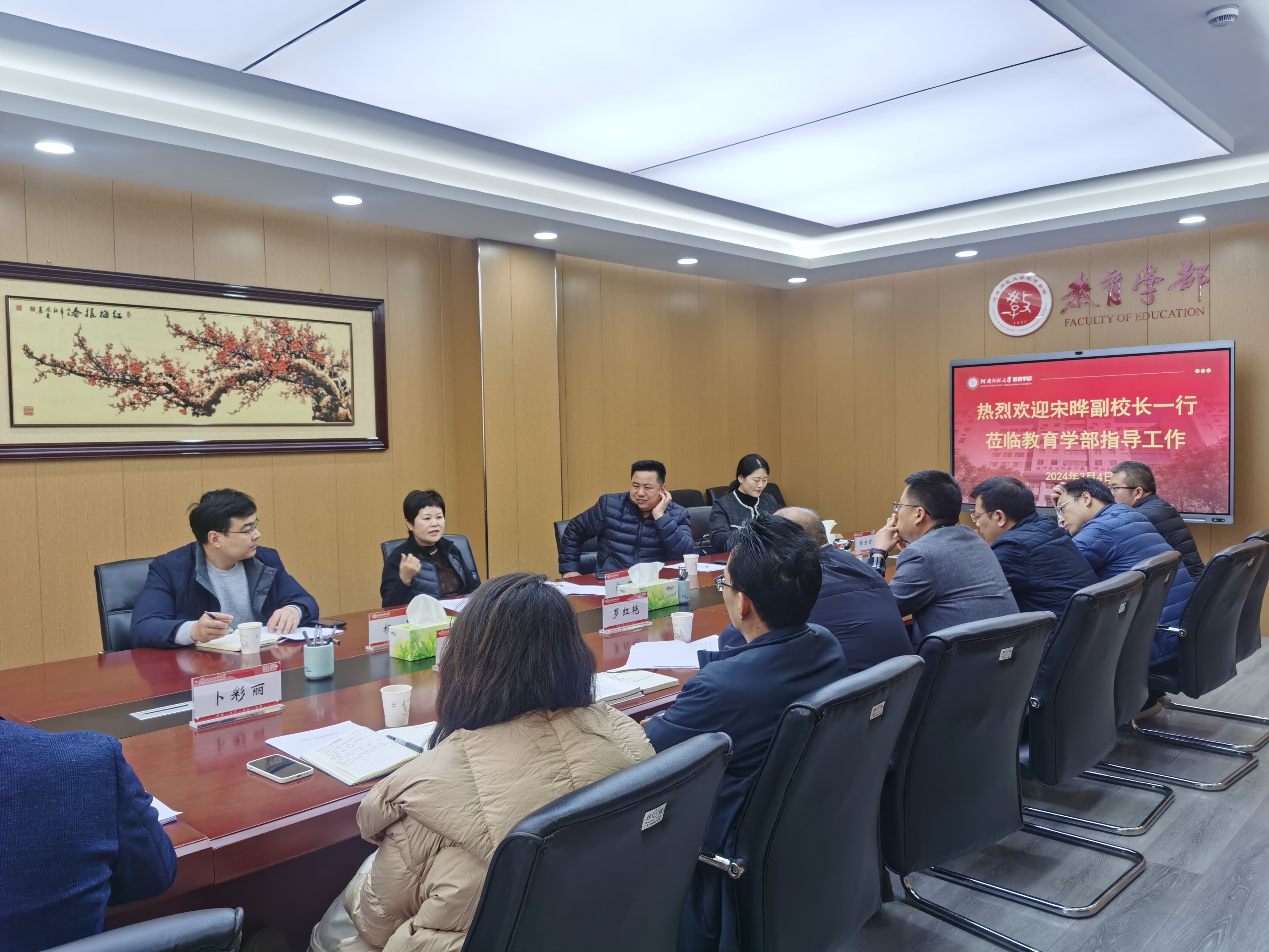3月4日下午,副校长宋晔到教育学部调研指导新学期工作。校党政办公室、基础教育集团、发展规划处等部门负责人陪同调研。教育学部全体领导班子参加调研座谈会。座谈会由教育学部党委书记陈勇主持。