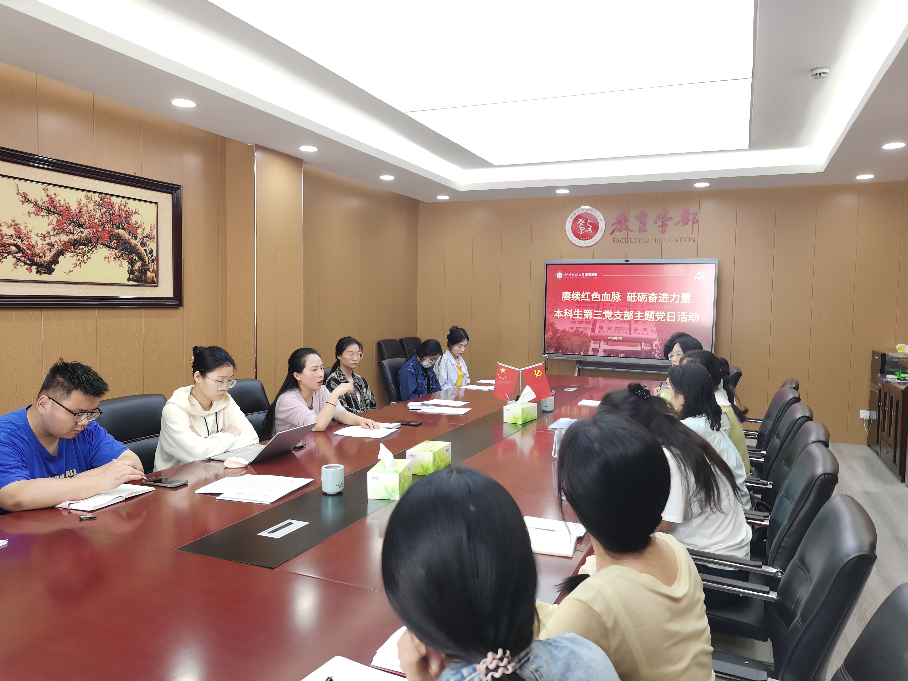 为重温党的光辉历史,加强爱国主义教育,继承和发扬党的光荣传统和优良作风,激励广大青年学生坚定理想信念。4月18日,教育学部本科生第三党支部在田家炳801会议室开展“赓续红色血脉,砥砺奋进力量”主题党日活动,全体党员、预备党员参加,会议由党支部书记徐亚萍主持。