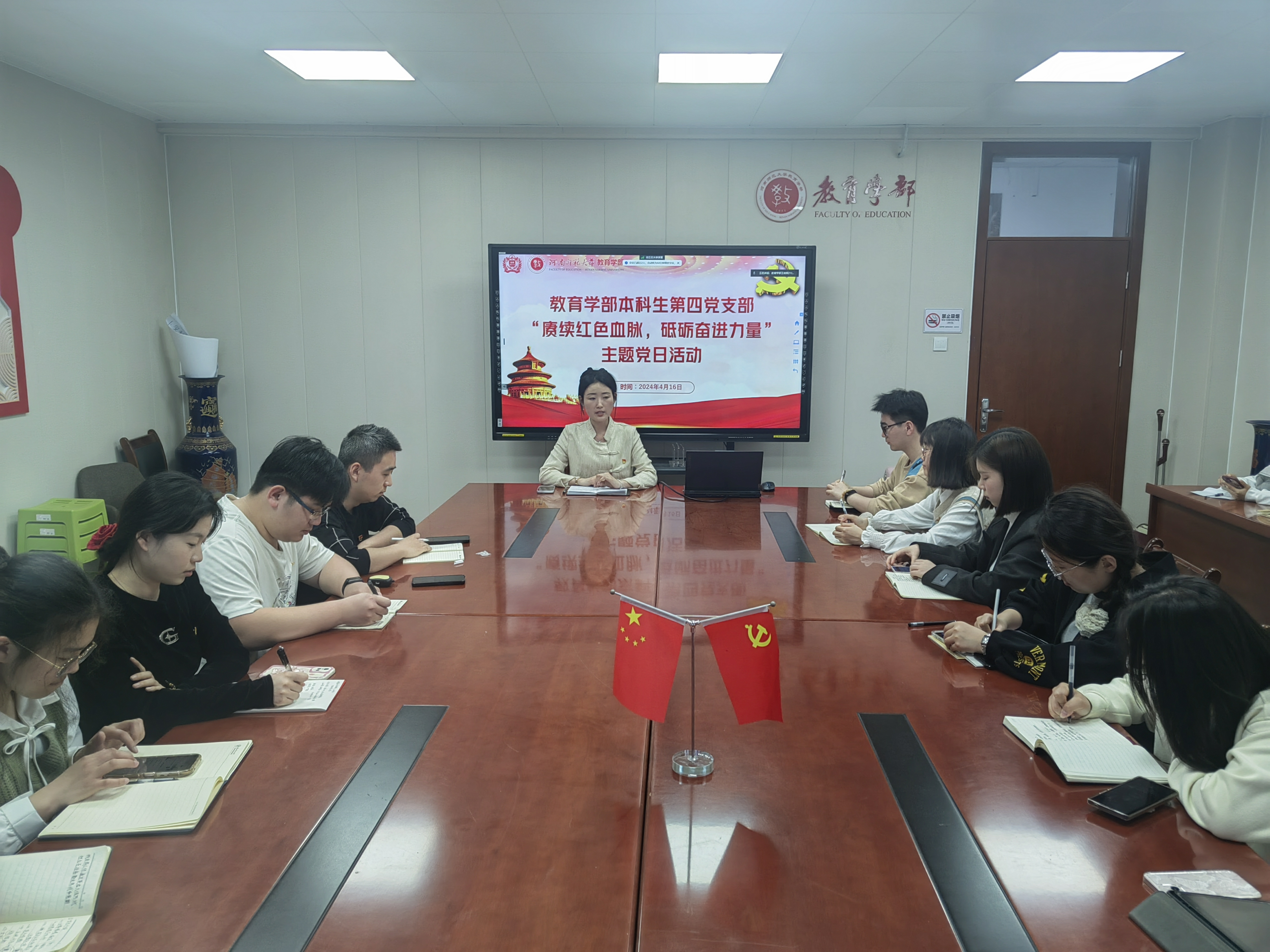 为扎实开展爱国主义教育,引导学生铭记历史,厚植爱国情怀,传承红色基因,4月16日,教育学部本科生第四党支部在田家炳807会议室开展“赓续红色血脉,砥砺奋进力量”主题党日活动,全体党员参加,会议由党支部书记陈赞赞支持。