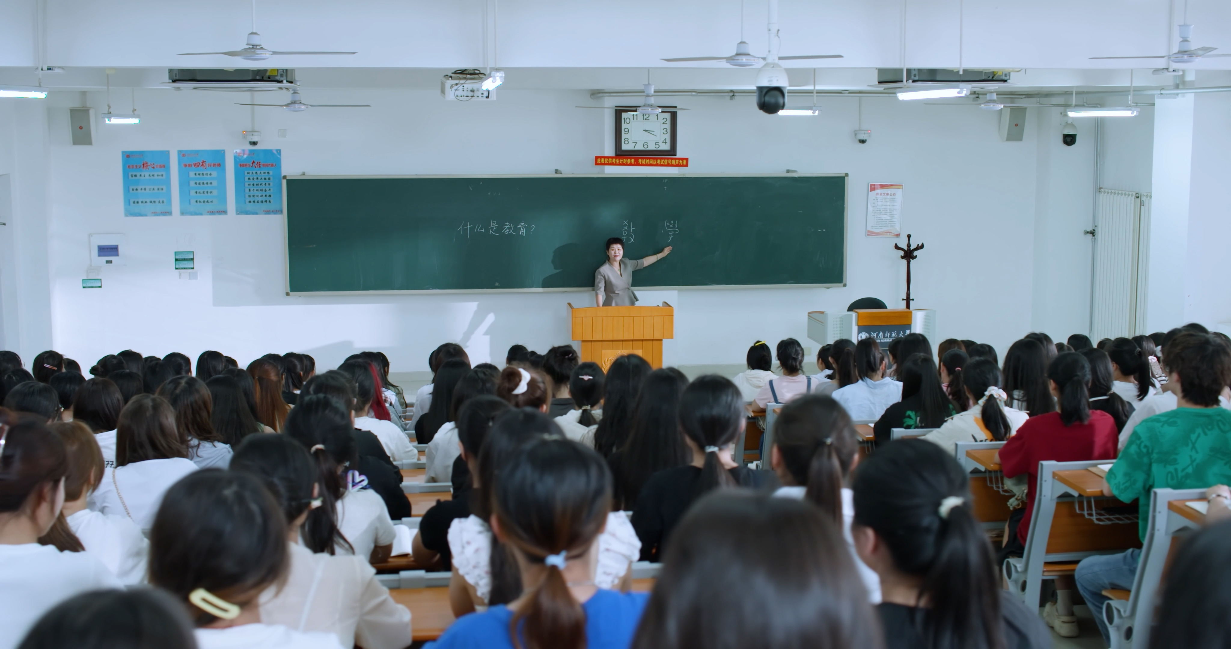 思政课堂上,宋晔结合师生现实关切,从“教学”二字的甲骨文解字切入启发师生体会“教育”的源起,从什么是教育、“四有好老师”、新时代大先生、弘扬教育家精神等维度展开,她表示,在建设教育强国的新征程上,作为教育人要潜心研究、锐意改革,通过“教”与“学”方式的变革,培育全面发展的高素质人才,为实现中华民族伟大复兴奠定坚实基础、提供有力支撑。就新时代师范生如何勇担教育新使命,宋晔深情寄语师生要以教育家精神长志气、强骨气、增底气,以老一辈的教育家为榜样,以杰出校友为榜样,以身边的优秀教师为榜样,眼望未来之路、心有责任担当,勤学笃行,与时俱进,切实将教育家精神内化为教书育人能力和躬耕教坛的亲身实践,书写好“强国建设,教育何为”的时代课题。