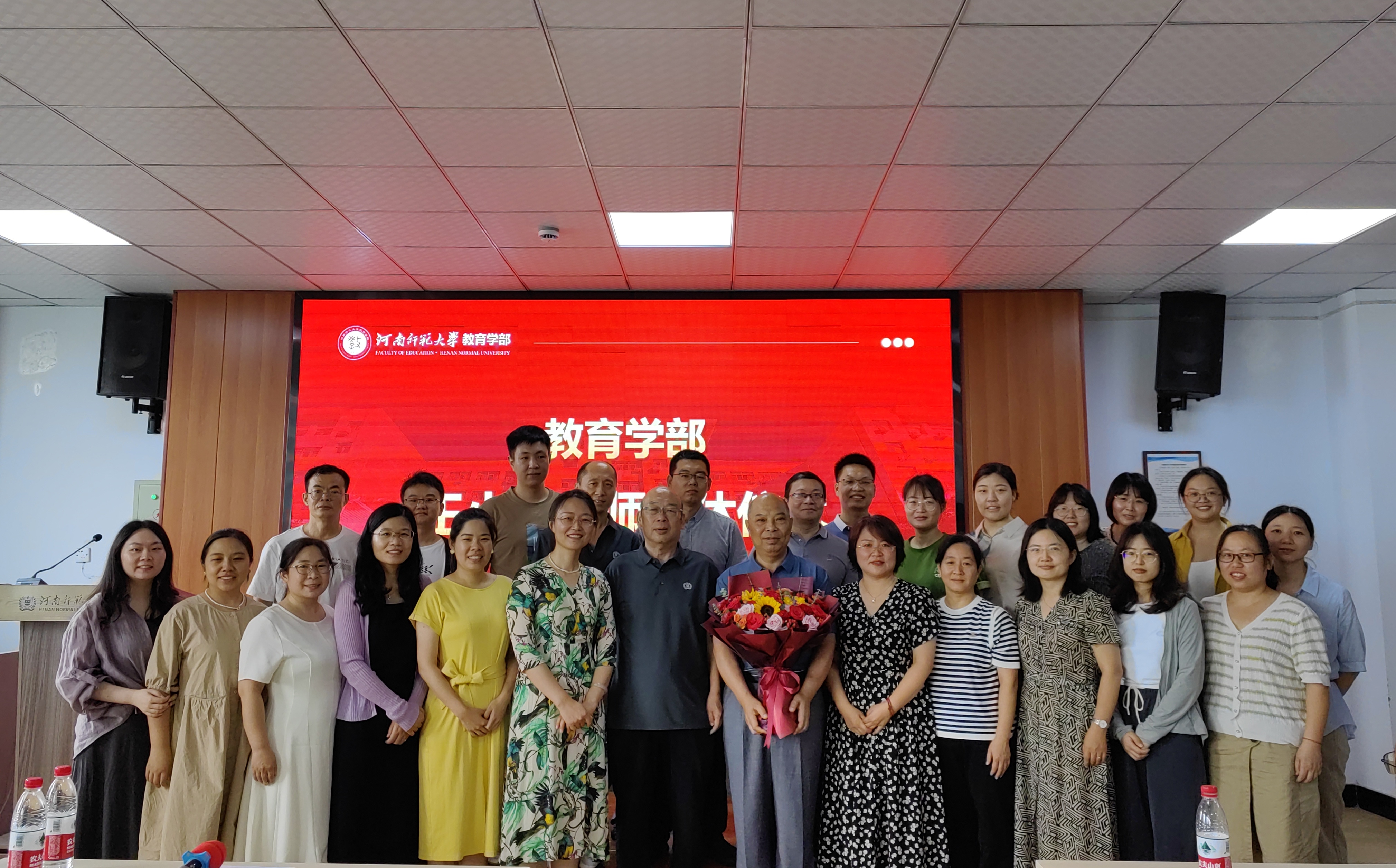王小新老师发表感言,深情回顾坚守三尺讲台、潜心教书育人的点点滴滴,讲述学部从教育系、教育科学学院、教育与教师发展学院、教育学院到教育学部的发展历程;表达对学部未来发展的美好祝愿和对同事的感激与不舍。