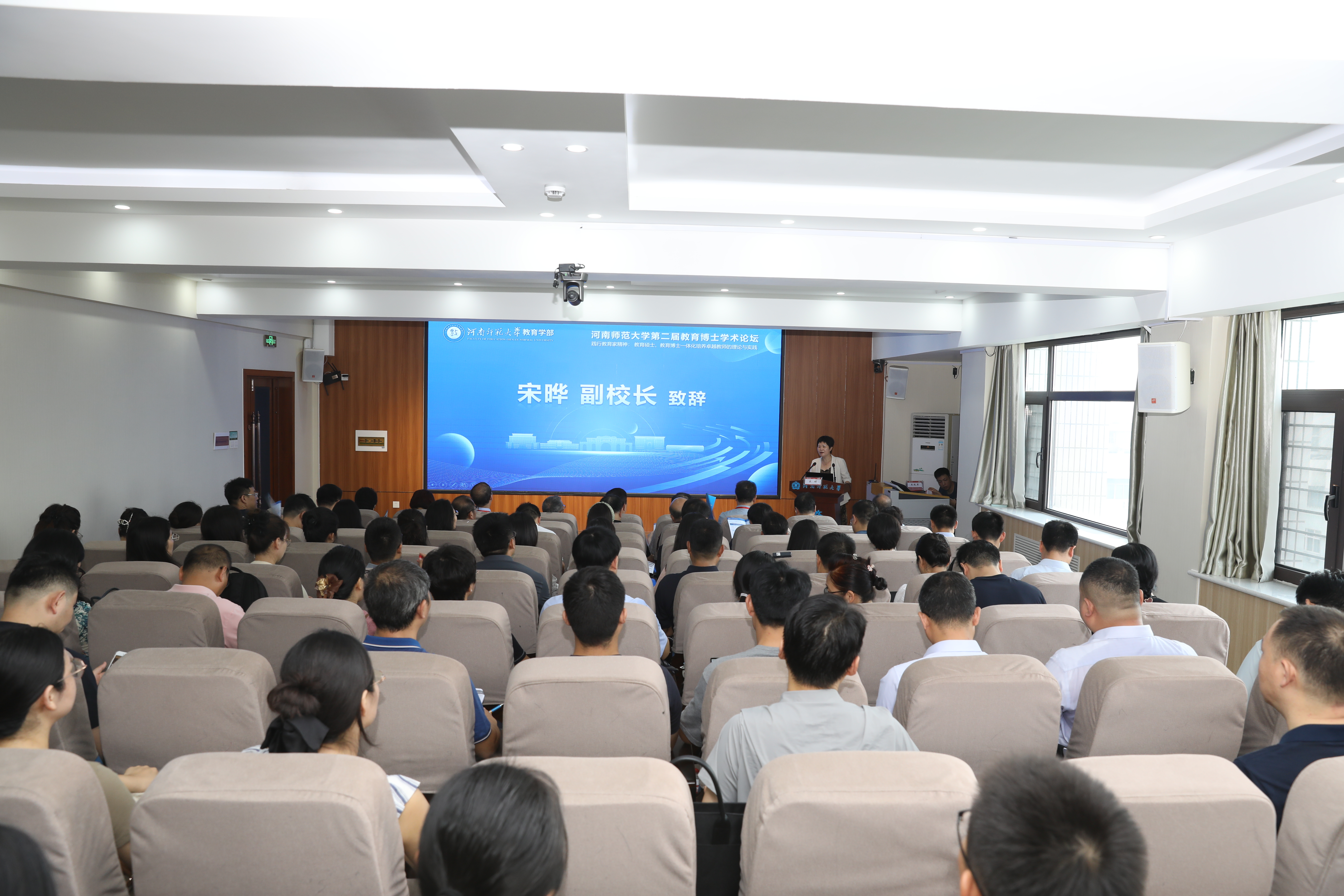 8月25日,由教育学部主办的河南师范大学第二届教育博士学术论坛在田家炳教育书院开幕,本次论坛以“践行教育家精神:教育硕士、教育博士一体化培养卓越教师的理论与实践”为主题。副校长宋晔出席论坛并致辞,学科领域专家、教育学部党政领导班子、教师代表、全体教育博士等百余人参加论坛。