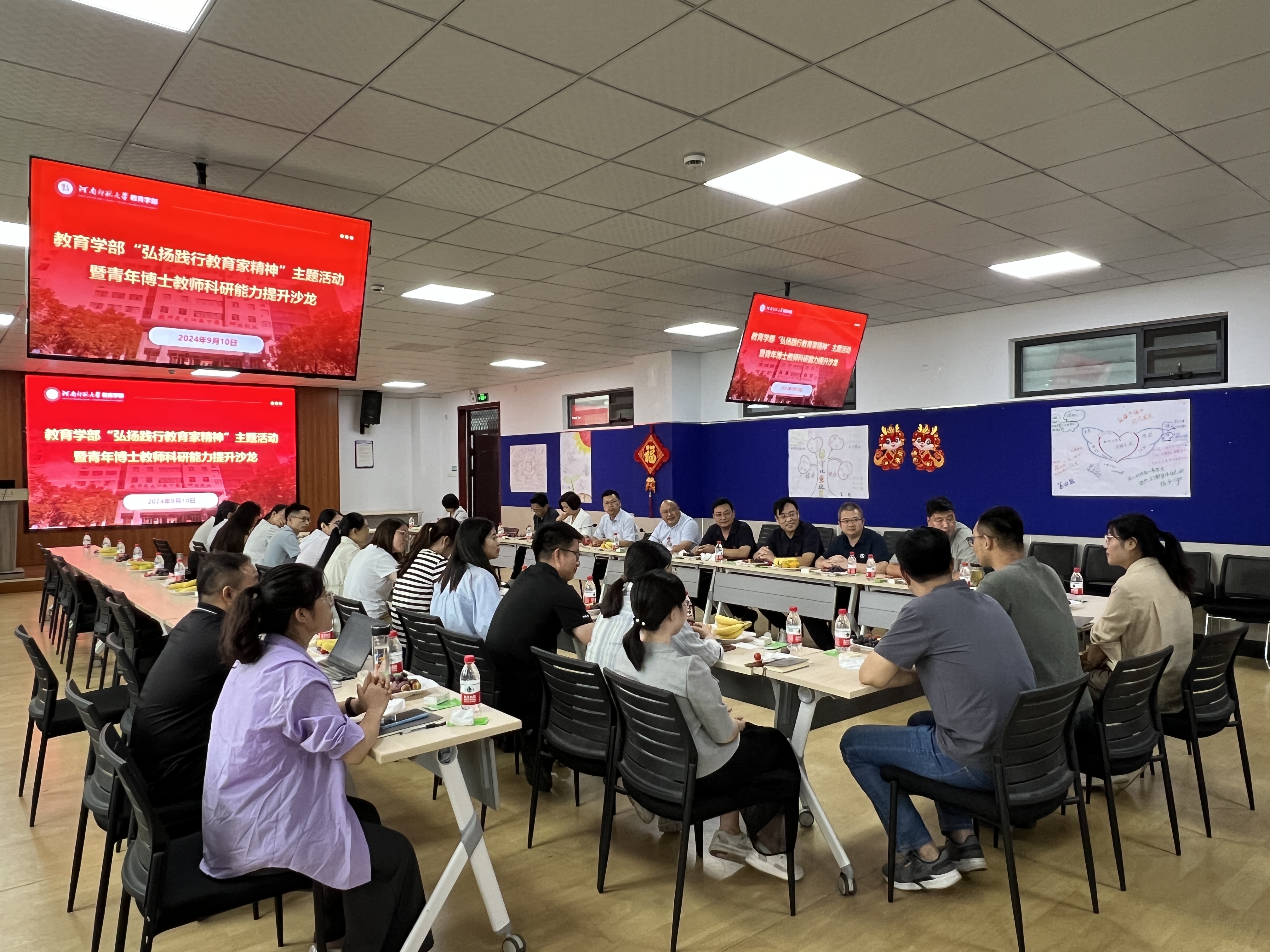 9月10日下午,教育学部在田家炳教育书院602室举办新教师入职仪式暨青年博士教师科研能力提升沙龙。活动以“弘扬践行教育家精神”为主题,学部党政领导班子、老教师代表、近三年入职博士共30余人参加活动。活动由学部党委书记陈勇主持。