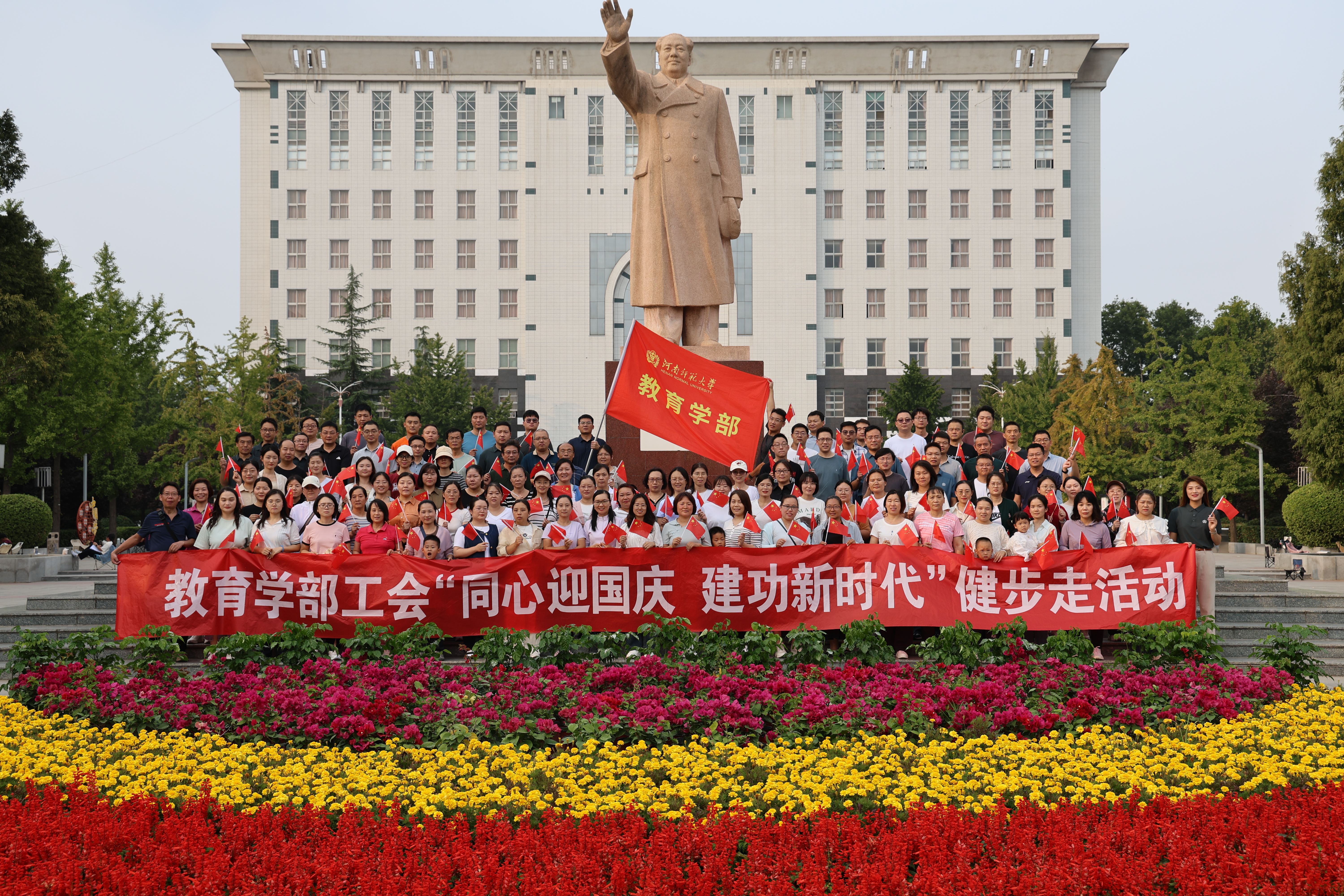 2024 年 9 月 28 日下午,为庆祝中华人民共和国成立75周年,营造“健康生活、快乐工作”的良好氛围,激发学部全体教职工奋进新征程、建功新时代,为全面推进中国式现代化贡献教育力量,教育学部举行“同心迎国庆 建功新时代”教职工环校园健步走活动。教育学部全体教职工参加了本次活动。