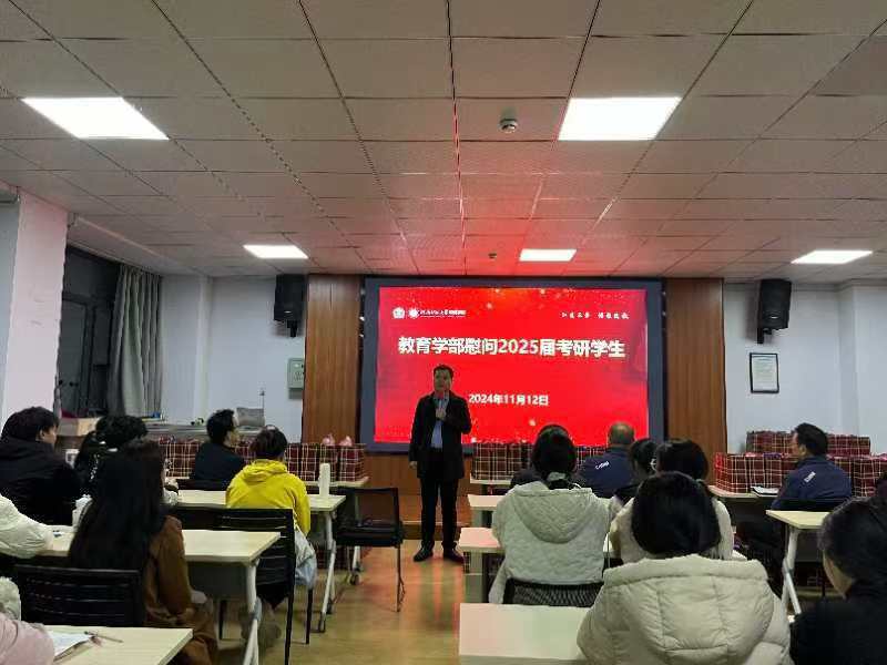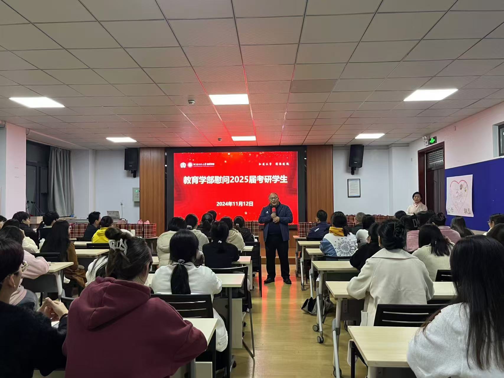 为增强备考信心,舒缓考研压力,助力备考冲刺,11月12日,教育学部在田家炳602教室开展2025届考研慰问活动,为备考学子送上美好祝福和温馨关怀。教育学部全体班子成员、各年级专兼职辅导员及2025届考研学生参加活动。活动由学部党委副书记康淑霞主持。