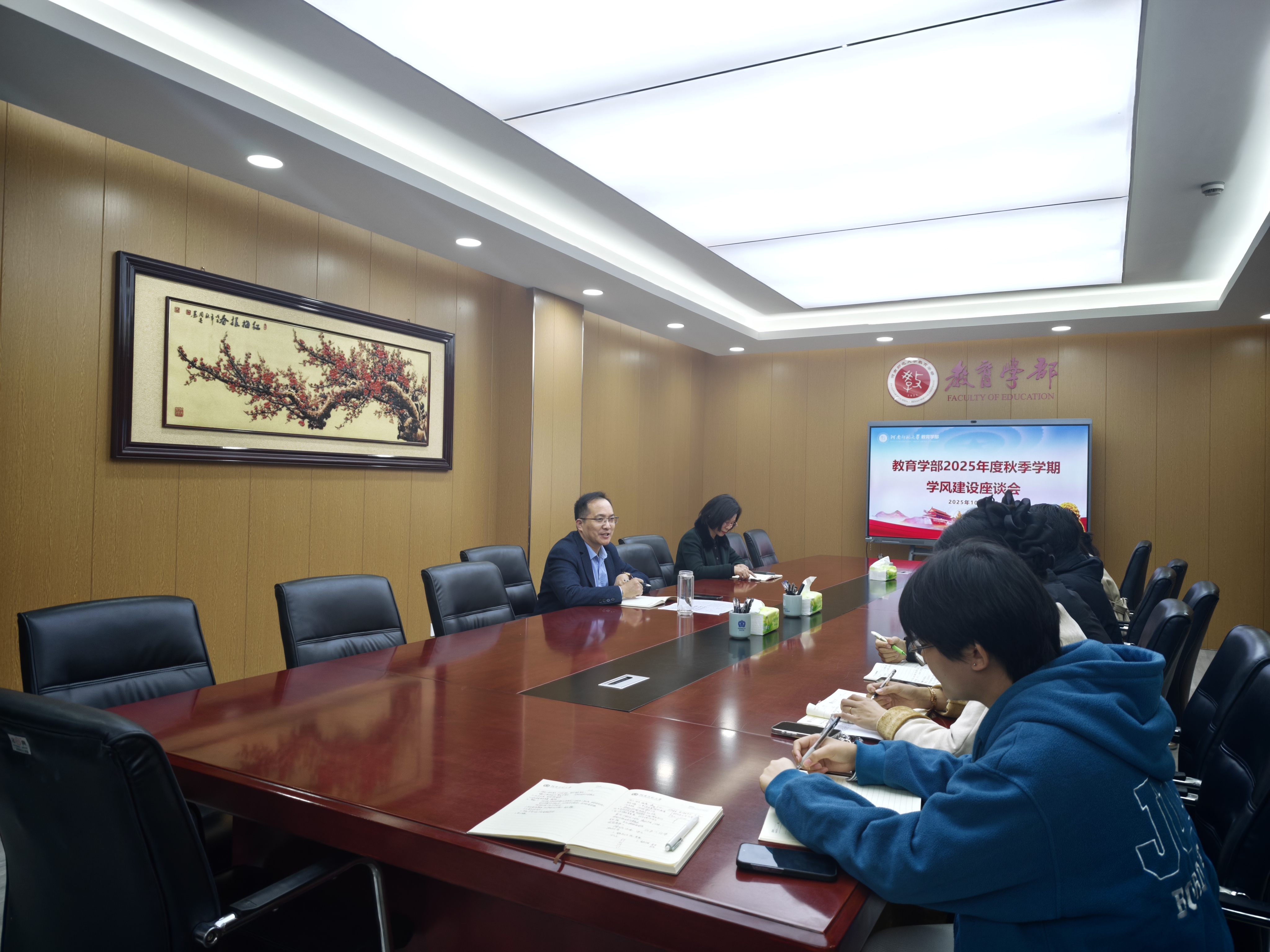 为营造积极向上、求真务实的优良学风,10月24日下午,教育学部在田家炳教育书院801会议室召开了2025年度秋季学期学风建设座谈会。教育学部党委书记王文豪、副书记康淑霞及全体专兼职辅导员参加会议。