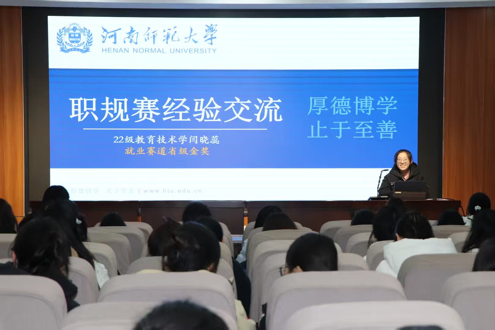2022级教育技术学专业闫晓蕊围绕就业赛道进行了系统阐述,她以“精准定位、实践支撑、前瞻规划”为主线,层层展开。她表示就业赛道的本质在于“模拟高质量求职汇报”,参赛者应围绕目标岗位实际需求,并结合发展现实需要科学规划职业路径,为同学们提供了“以实证为支撑”的备赛思路。2022级小学教育专业刘雪雪则将职业目标明确指向“乡村小学全科教师”。她谈到,在确立这一目标时,自己充分考虑了国家乡村振兴战略对乡村教育人才的实际需要,同时结合了小学教育专业的学科优势与自身特点。她还表示,职业规划不是一成不变的,需要通过持续的学习总结与实践反思,不断调整和优化规划内容,使其更加贴合乡村教育的实际需求与个人成长节奏。2023级教育学专业宋柳围绕成长赛道,系统梳理了备赛全流程要点,从赛事认知入手,建议将职业规划划分为“目标设定—能力差距分析—实践计划”等模块,以增强内容的条理性,从而在比赛中更好地展现个人的成长路径与未来潜力。