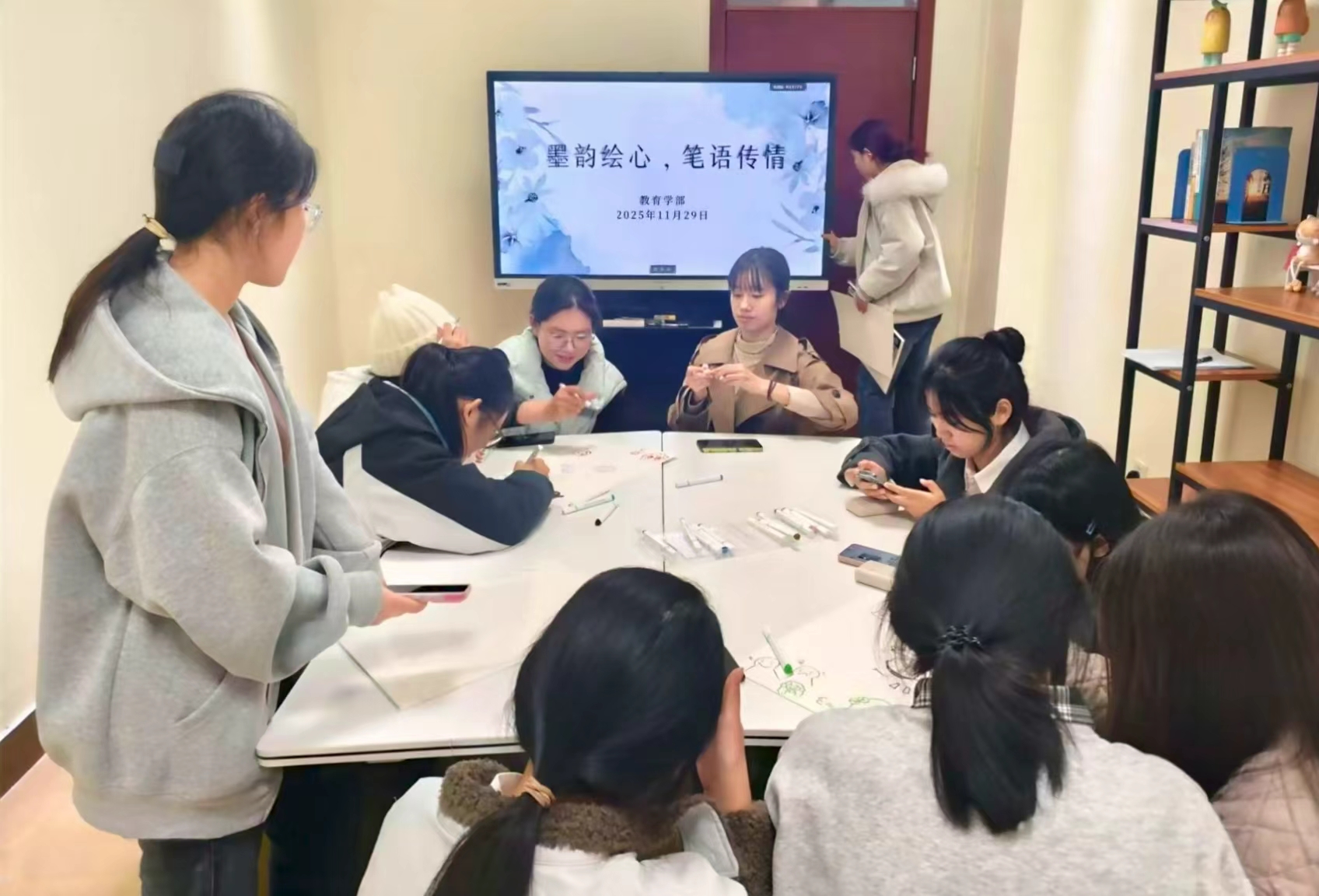 为丰富校园文化生活,创新心理健康教育载体,引导大学生通过艺术表达实现情绪疏导与自我成长,11月29日,教育学部在田家炳816心晴驿站举办“墨韵绘心,笔语传情”心理健康主题活动。