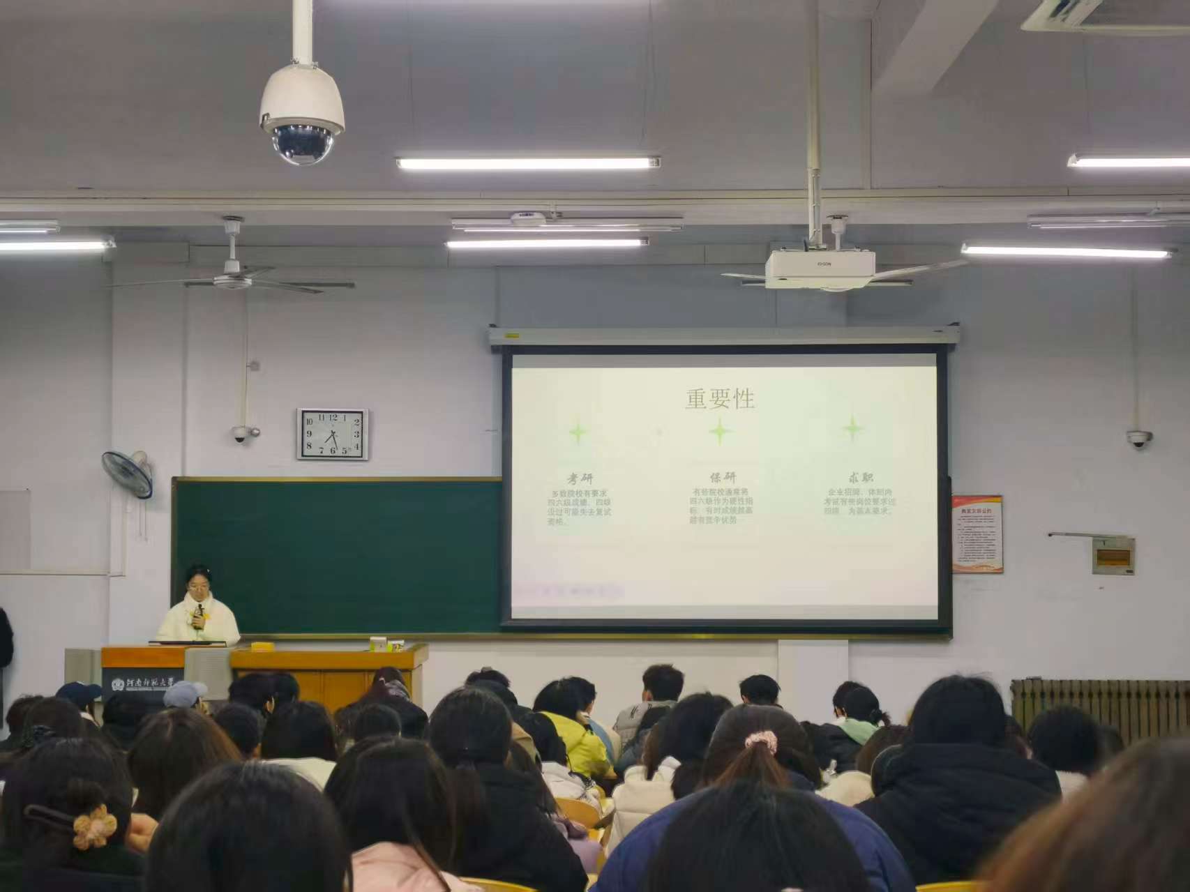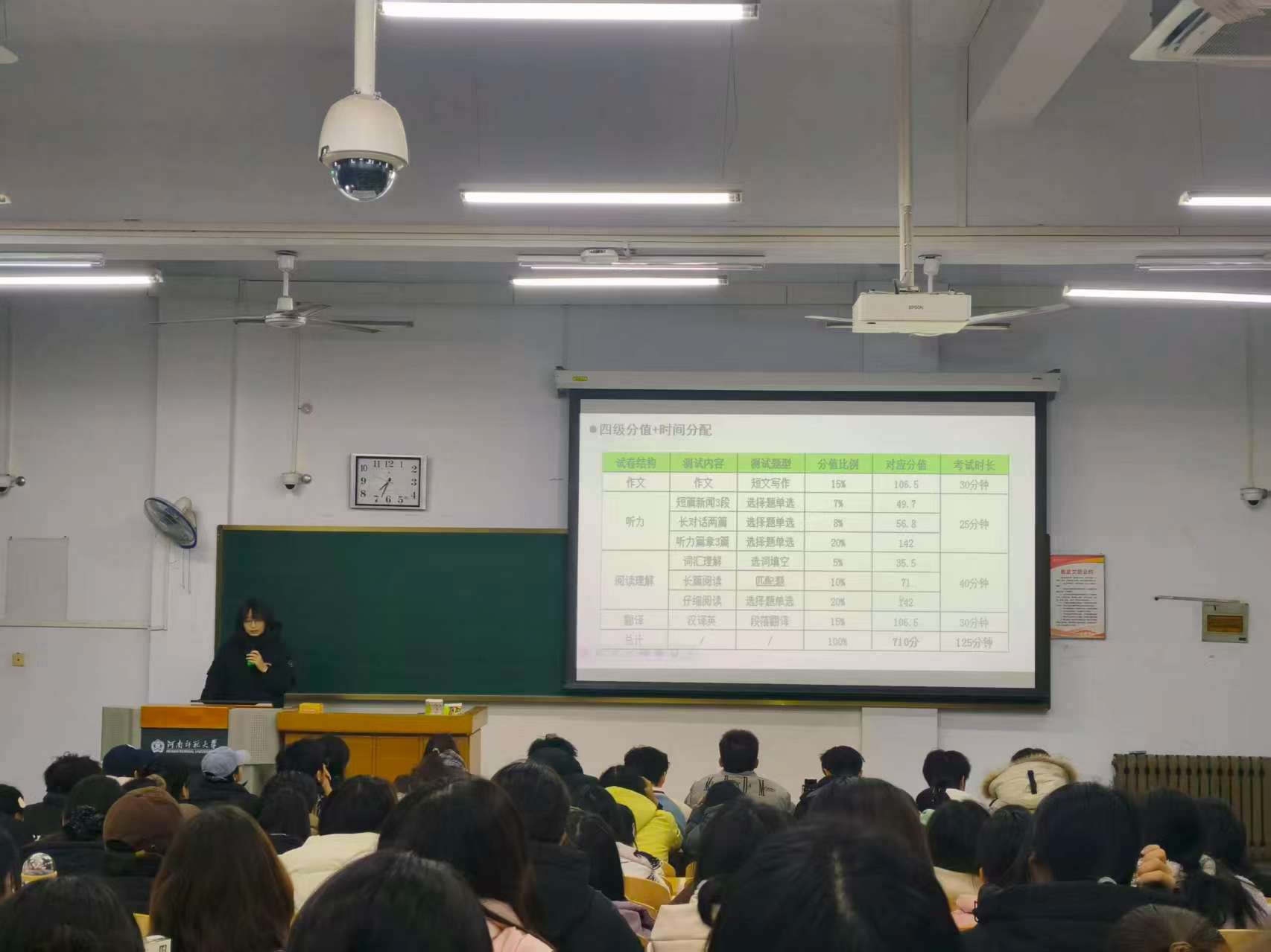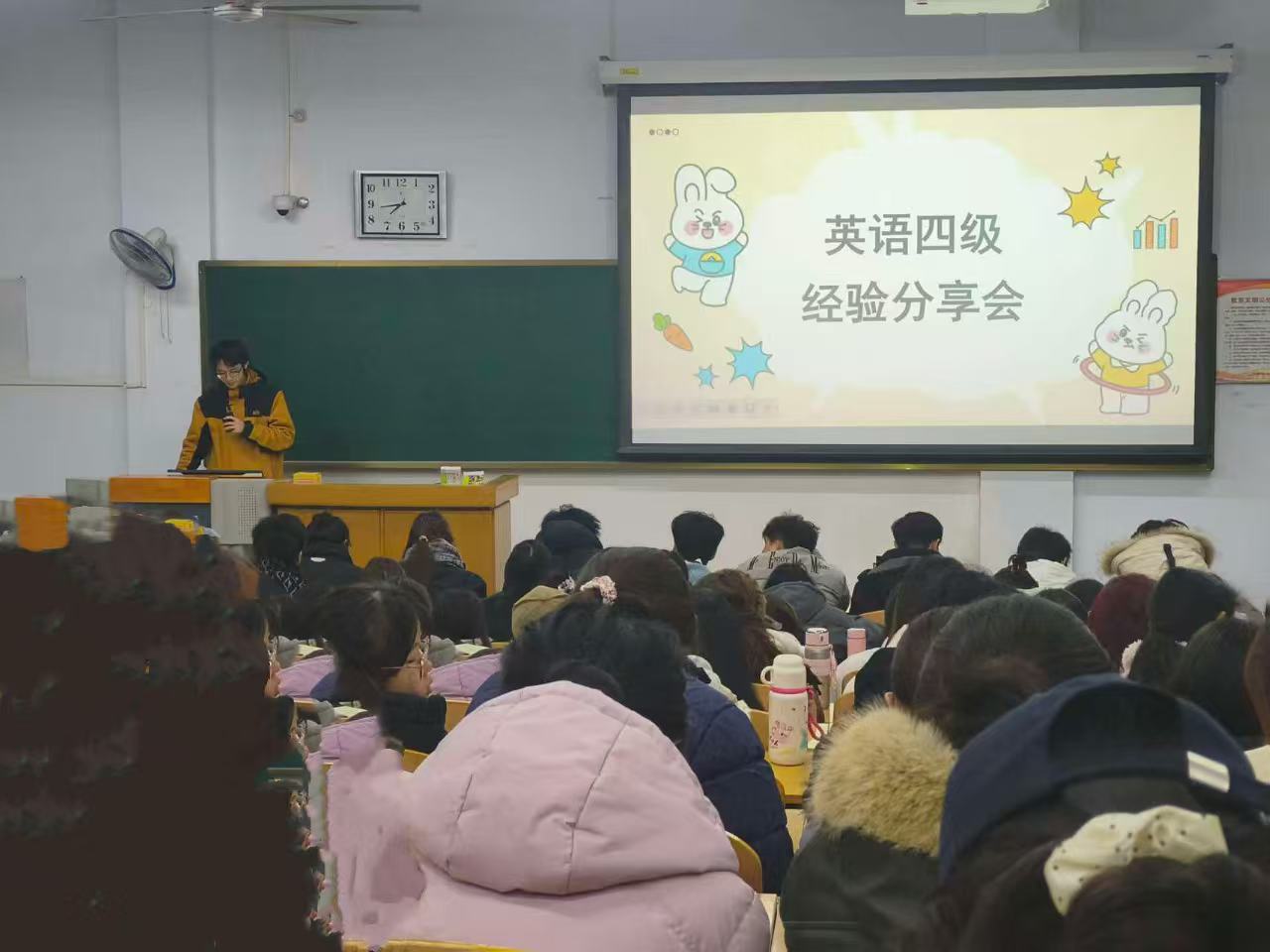 活动伊始,陈赞赞明确英语四级考试对学业发展与求职竞争的重要意义,鼓励同学们珍惜交流机会,明确方向,高效备考。随后,四位分享人结合自身备考经历,介绍了具体的学习方法与应试技巧。2023级小学教育专业刘东林(四级607分)从听力训练入手,提出“精听与泛听相结合”的日常练习策略;2024级教育技术学专业李梦琦(四级568分)针对阅读理解部分,分析了不同题型的解题思路与时间分配方法;2024级心理学专业王润蕾(四级609分)围绕写作与翻译,分享了高分表达积累技巧;2023级教育学孙嘉遥(608分)则从词汇记忆与备考心态两方面,强调持之以恒和积极心理调适的重要性。