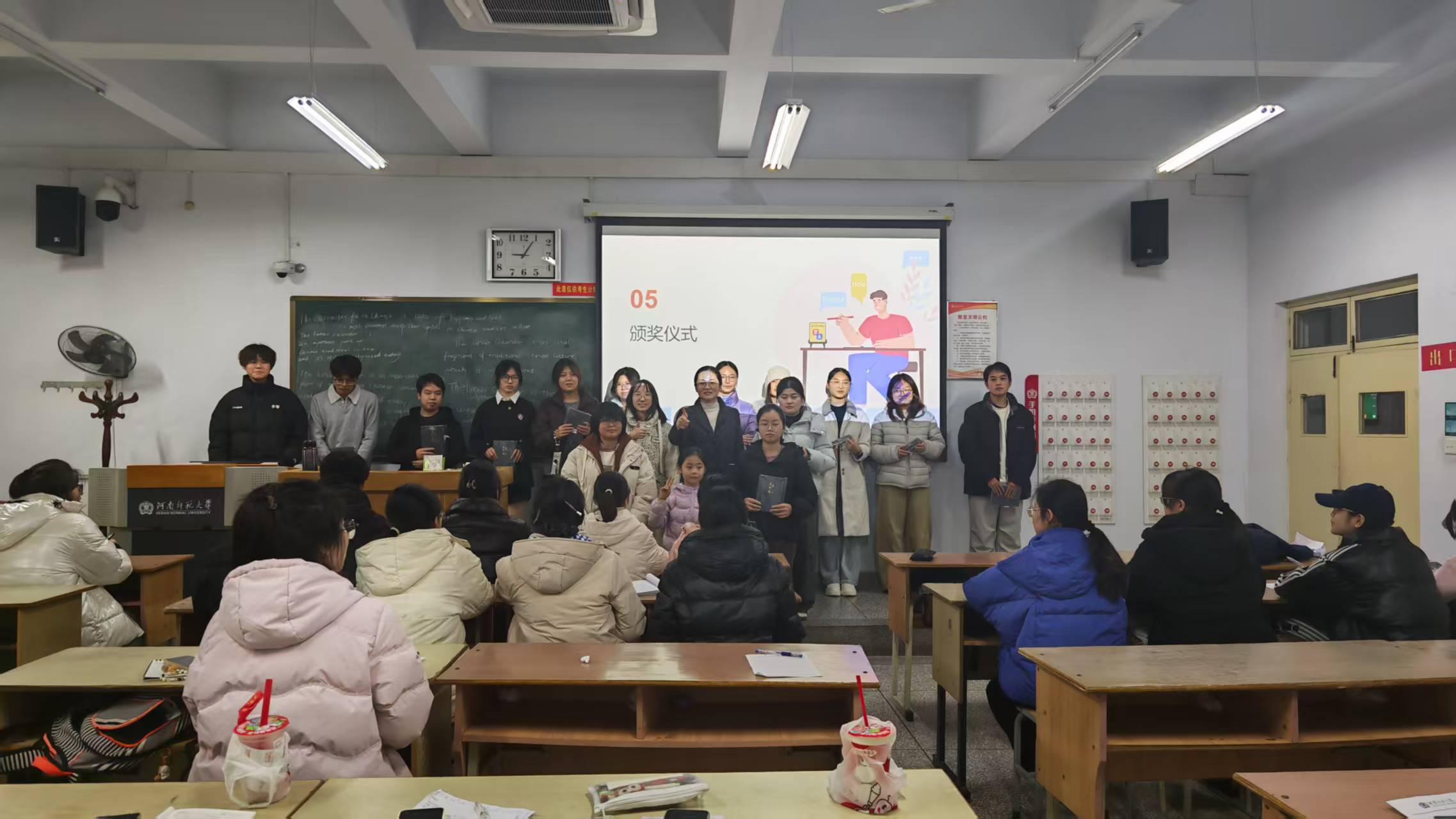 活动分为两个环节,让同学们在竞技与协作中收获知识与快乐。“单词接龙大挑战”活动迅速点燃全场热情。主持人一声令下,各小组迅速进入状态,从“abandon”到“nation”,从“environment”到“tension”,同学们反应迅速、思维敏捷,既要快速接出单词,又要保证拼写正确。有的小组因单词卡壳紧张不已,有的小组凭借扎实词汇储备一路领先,台下观众呐喊助威声此起彼伏,紧张欢乐的氛围弥漫全场。“翻译‘神还原’大挑战”活动将气氛推向高潮。题目涵盖传统文化、社会热点等内容,同学们或凝神思考,或流畅书写,既有准确精彩的译文,也有轻松可爱的小插曲。活动尾声,评委依据选手的综合表现,评选出一、二、三等奖及优秀奖,班主任炕留一为获奖选手颁发奖品,并对活动进行总结。她肯定了选手们的积极参与和精彩表现,强调词汇积累与翻译练习的重要性,鼓励大家将热情与拼搏精神延续到日常学习中。