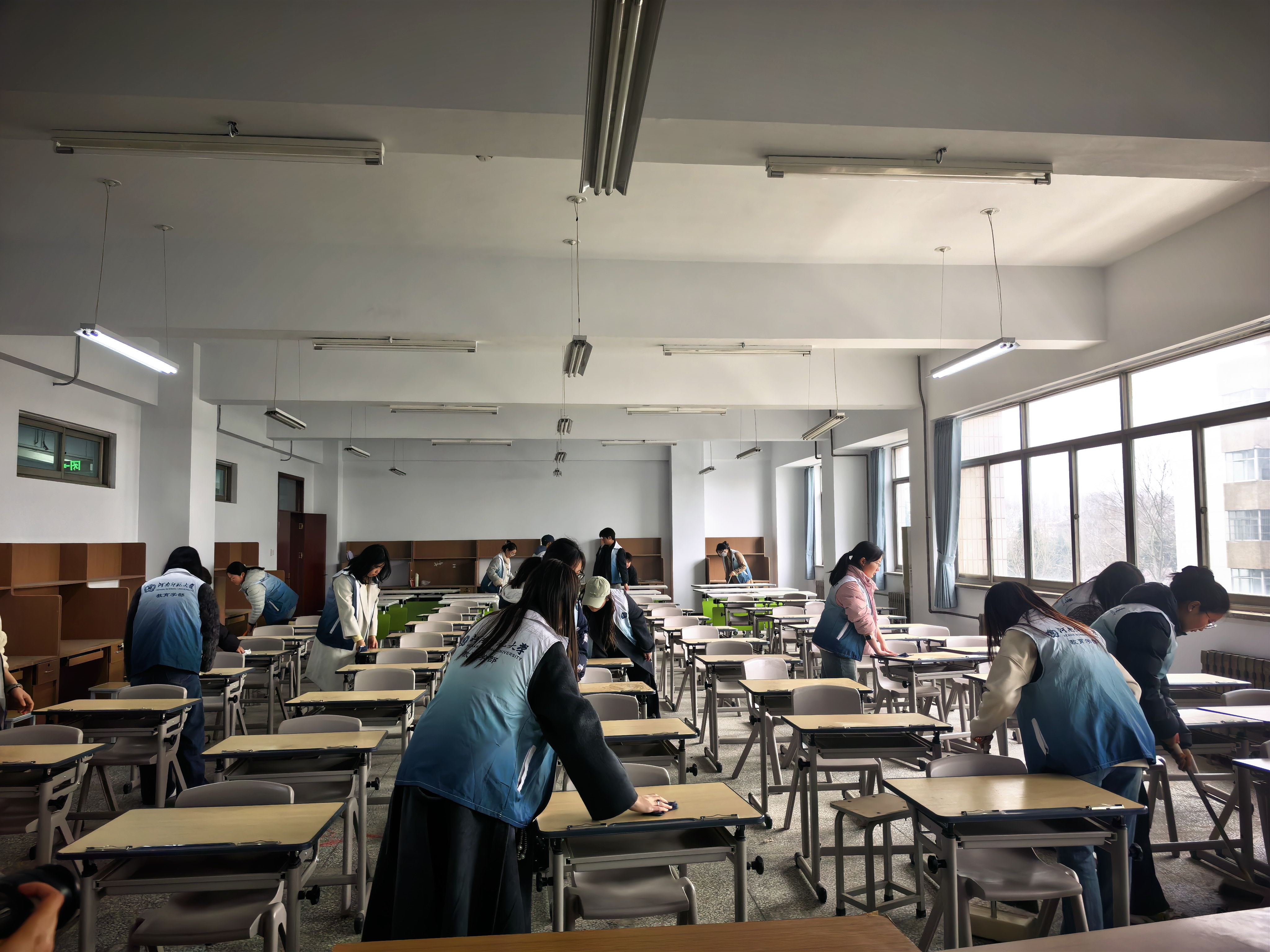 挂牌活动结束后,党员们自发组织前往学部的考研教室开展卫生打扫和志愿服务,以实际行动践行党员承诺,展现先锋模范作用,积极营造整洁、文明、向上的学习生活环境。