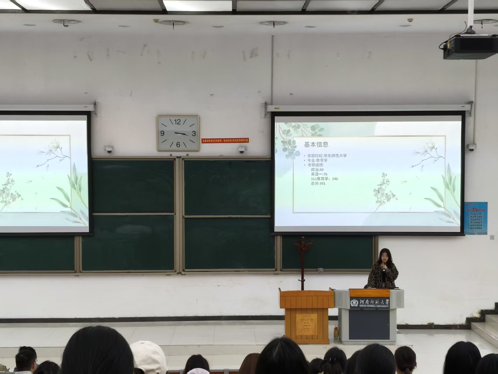 为帮助学生科学规划考研路径,教育学部于4月21日在文昌楼127教室举办“研途星光,引航前行”考研经验交流会。活动邀请多位成功上岸的优秀学子分享考研经验,覆盖教育学、小学教育、心理学、教育技术学四个专业,为在场的低年级学生提供了全面实用的备考指导。