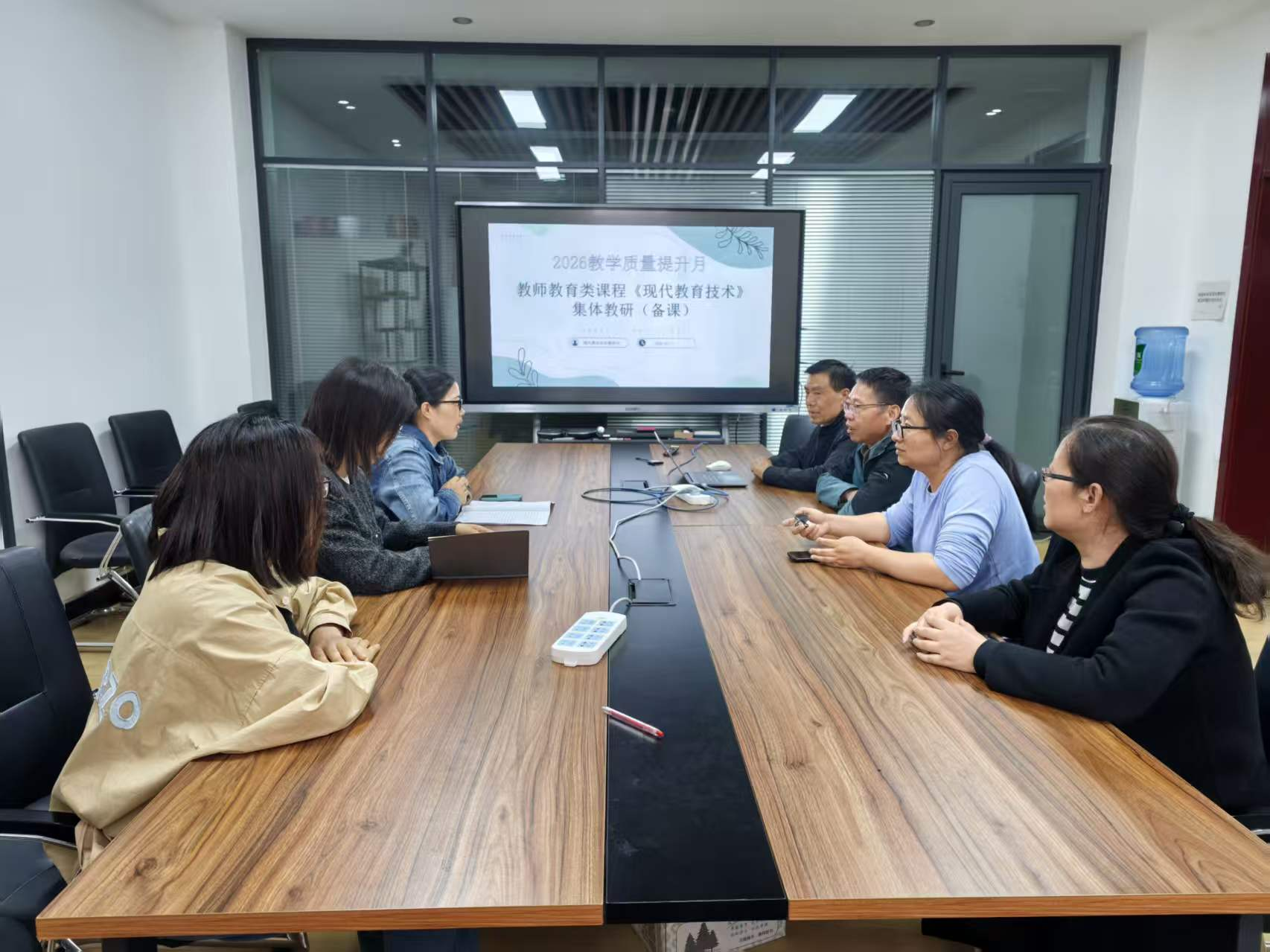 教师教育课程《现代教育技术》课程团队集体教研会于21日下午在513会议室召开。会上,胡金艳院长传达了学校教学质量提升月工作要求,解读了学部教师教育课程质量提升专项方案,明确了课程教研重点与建设方向。研讨交流阶段,全体教师紧扣课堂教学组织管理、课程内容体系优化、教学资源共建共享、人工智能助力课堂教学改革等核心问题充分交流研讨,互鉴教学心得、凝练育人方法、精进课程教学设计。本次教研活动压实课程育人责任,深化课程教学改革,有效提升《现代教育技术》课程教学质量,助力学院教师教育课程高质量建设,为高素质基础教育人才培育筑牢教学支撑。