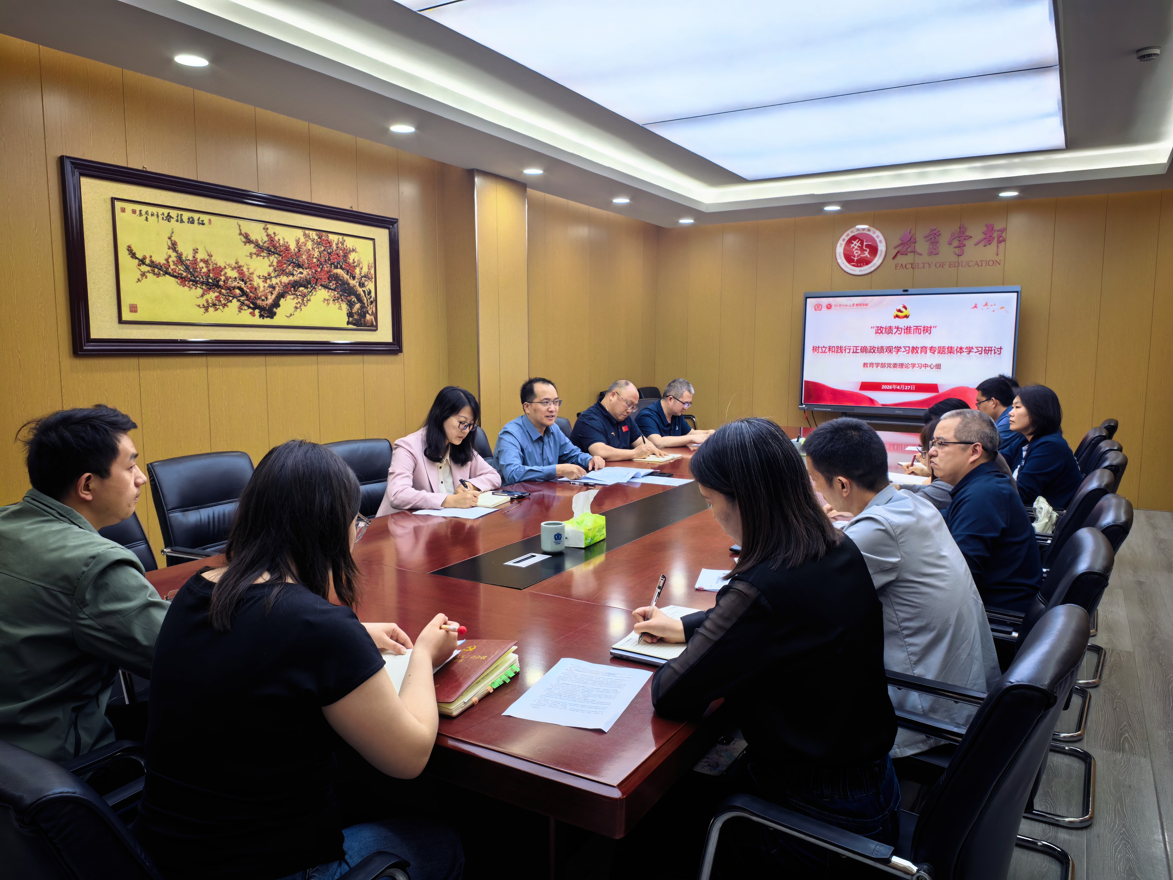 为深入学习贯彻习近平总书记关于树立和践行正确政绩观的重要论述,4月27日,教育学部在田家炳教育书院801会议室围绕“政绩为谁而树”主题召开树立和践行正确政绩观学习教育专题学习研讨会。学部党委委员、纪委委员、党支部书记参加会议。会议由学部党委书记王文豪主持。