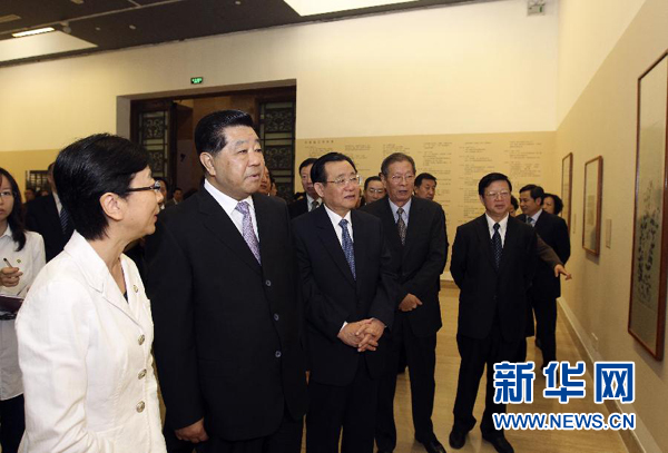 9月23日,中共中央政治局常委、全国政协主席贾庆林来到中国美术馆,参观正在这里举办的“纪念辛亥革命一百周年何香凝艺术精品展”。新华社记者丁林摄