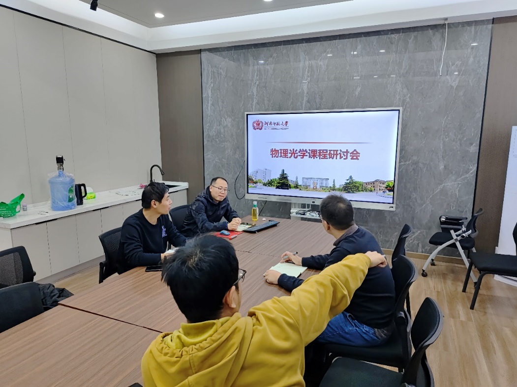 11月18日下午,物理光学课程教学团队于物理南楼会议室217举行了本学期的第二次教学研讨会,会议由课程负责人路海老师主持。