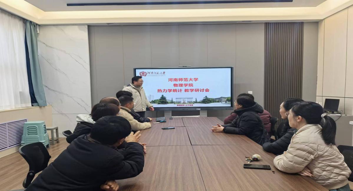 12月6日, 《热力学统计》教学团队,在物理南楼115会议室举行了本学期第二次教学研讨会,参会教师有楚兴丽、张娜、杨春洁、李惠静、耿振铎、张达崴、王永永、黎文峰、杨枫及陈响共10人。会议由课程负责人楚兴丽老师主持,参会教师主要围绕三个议题进行了热烈的讨论和交流。