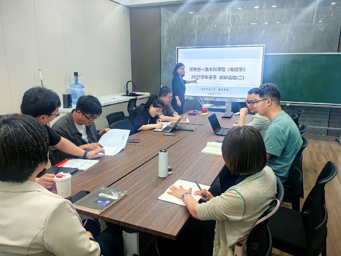5月13日下午,物理学院电磁学课程团队在物理南楼217召开2025年春季学期河南省一流本科课程《电磁学》第二次教研活动。