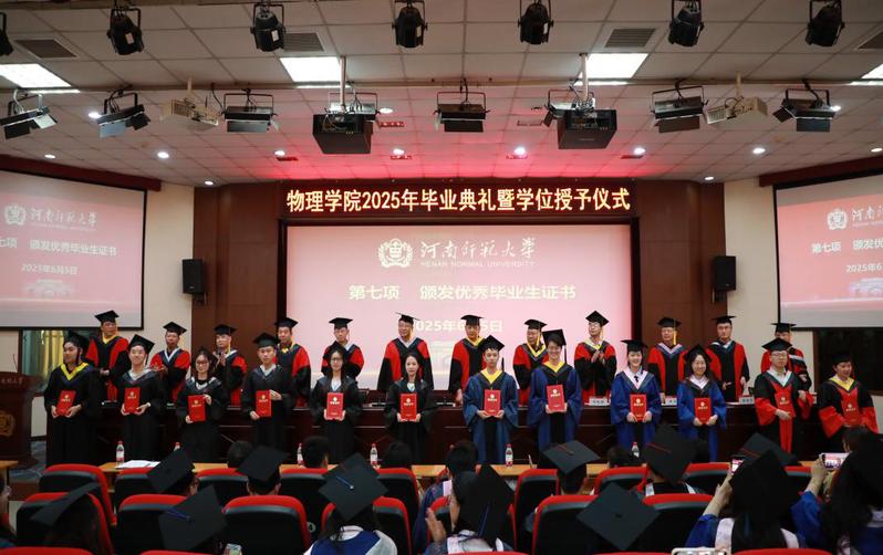 “点燃青春的火炬,开启智慧的宝藏……”物理学院2025年毕业典礼暨学位授予仪式在《河南师范大学校歌》的旋律中落下帷幕,全体毕业生满载着母校、师长与亲人的期望,带着物理人的严谨与热忱,踏上新的征程。
