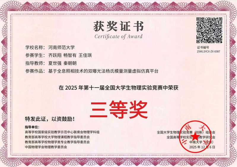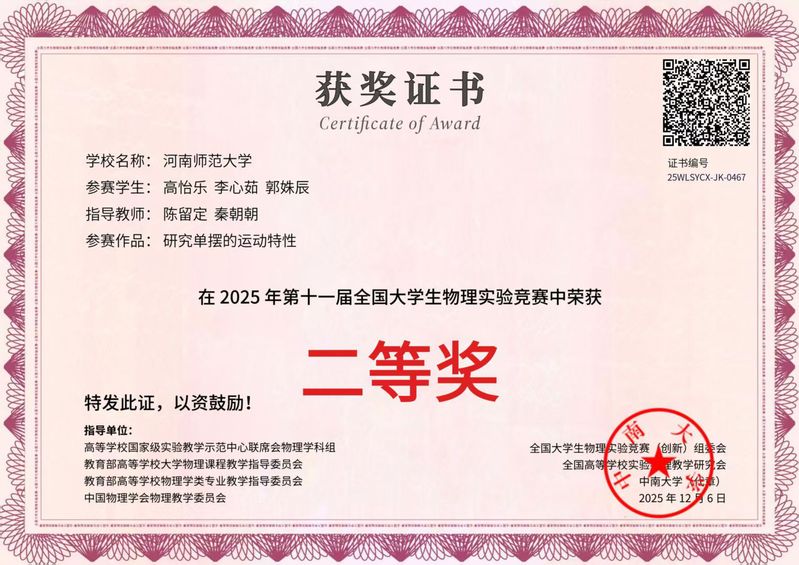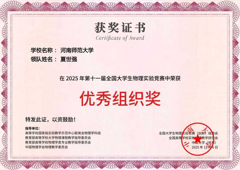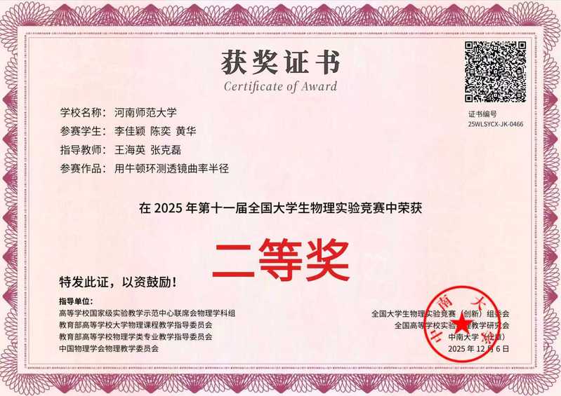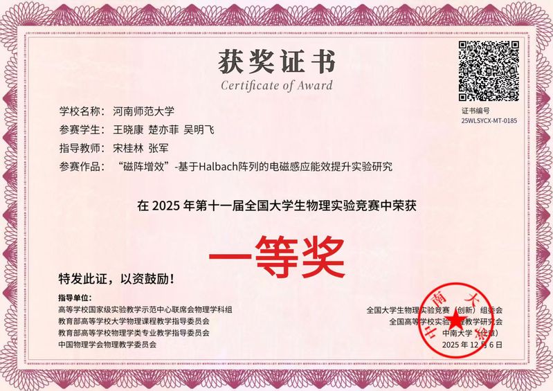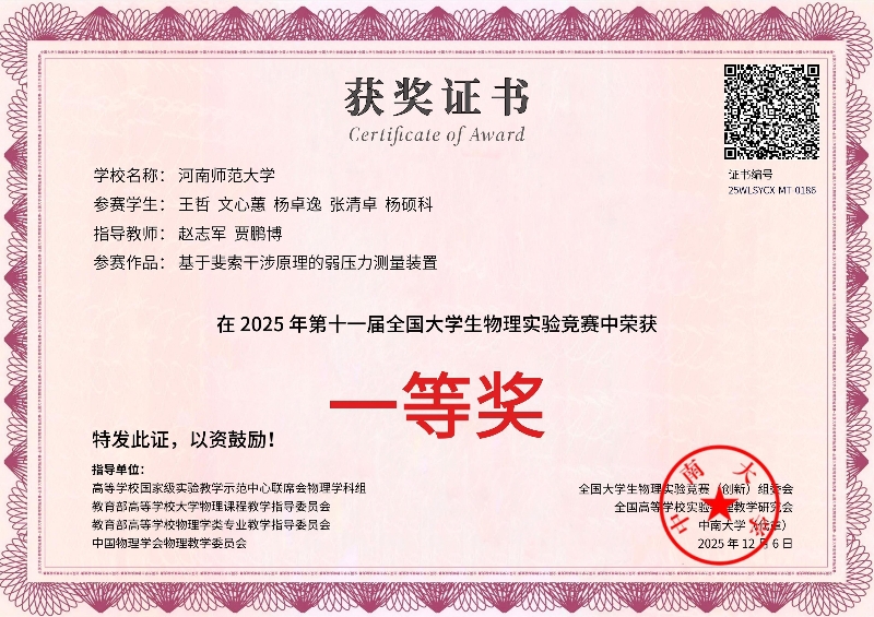 我院学子在第十一届全国大学生物理实验竞赛(创新)中斩获佳绩