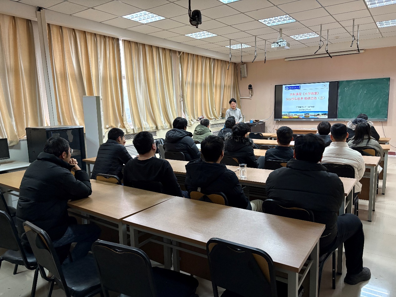 2025年12月23日下午,我院本科课程《大学物理》教学团队于物理南楼A511会议室召开了本学期第三次教学研讨会。会议由教学团队负责人孟举老师主持。