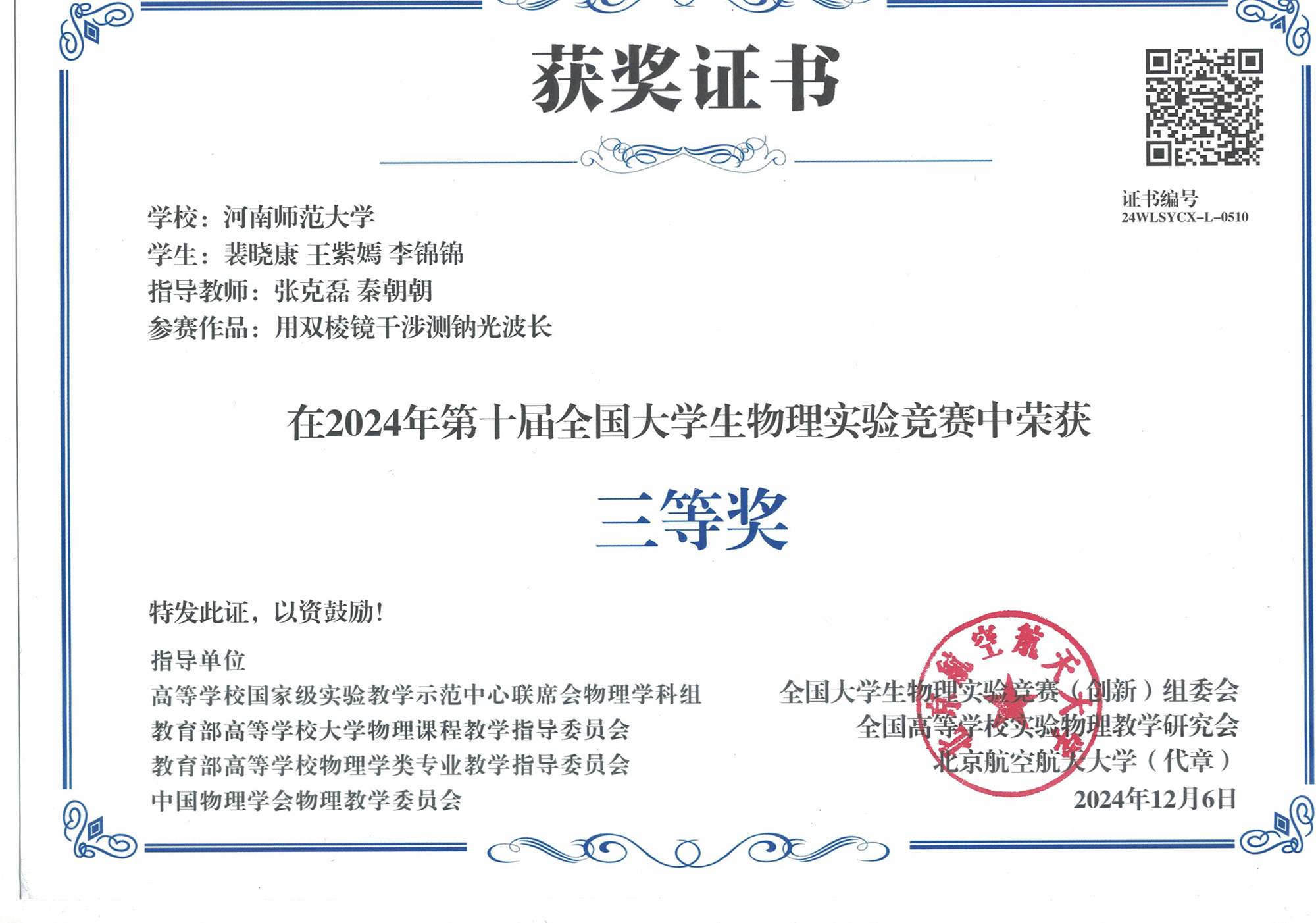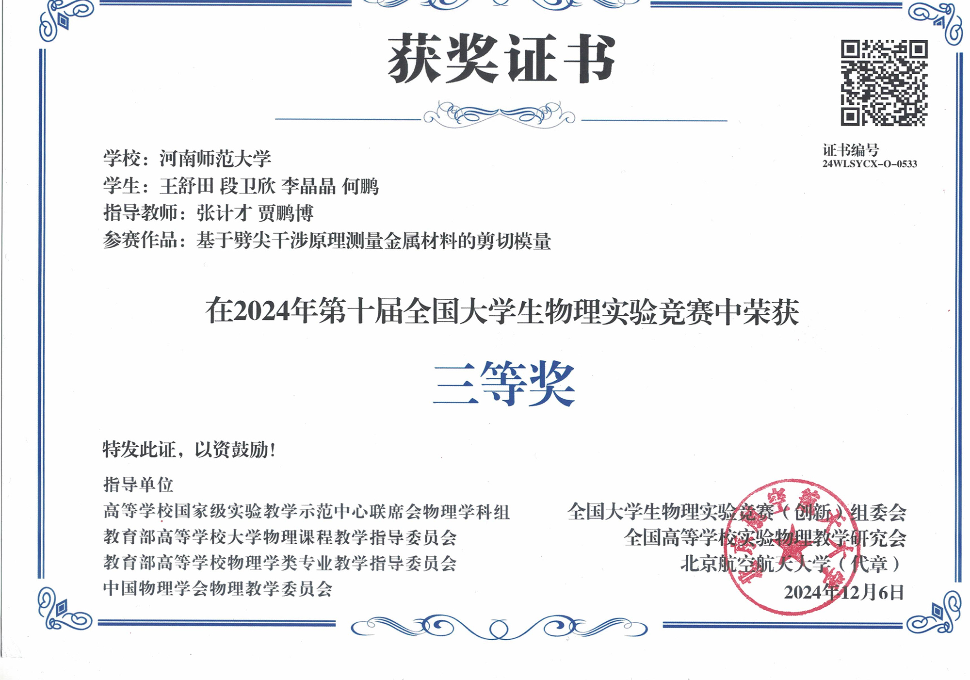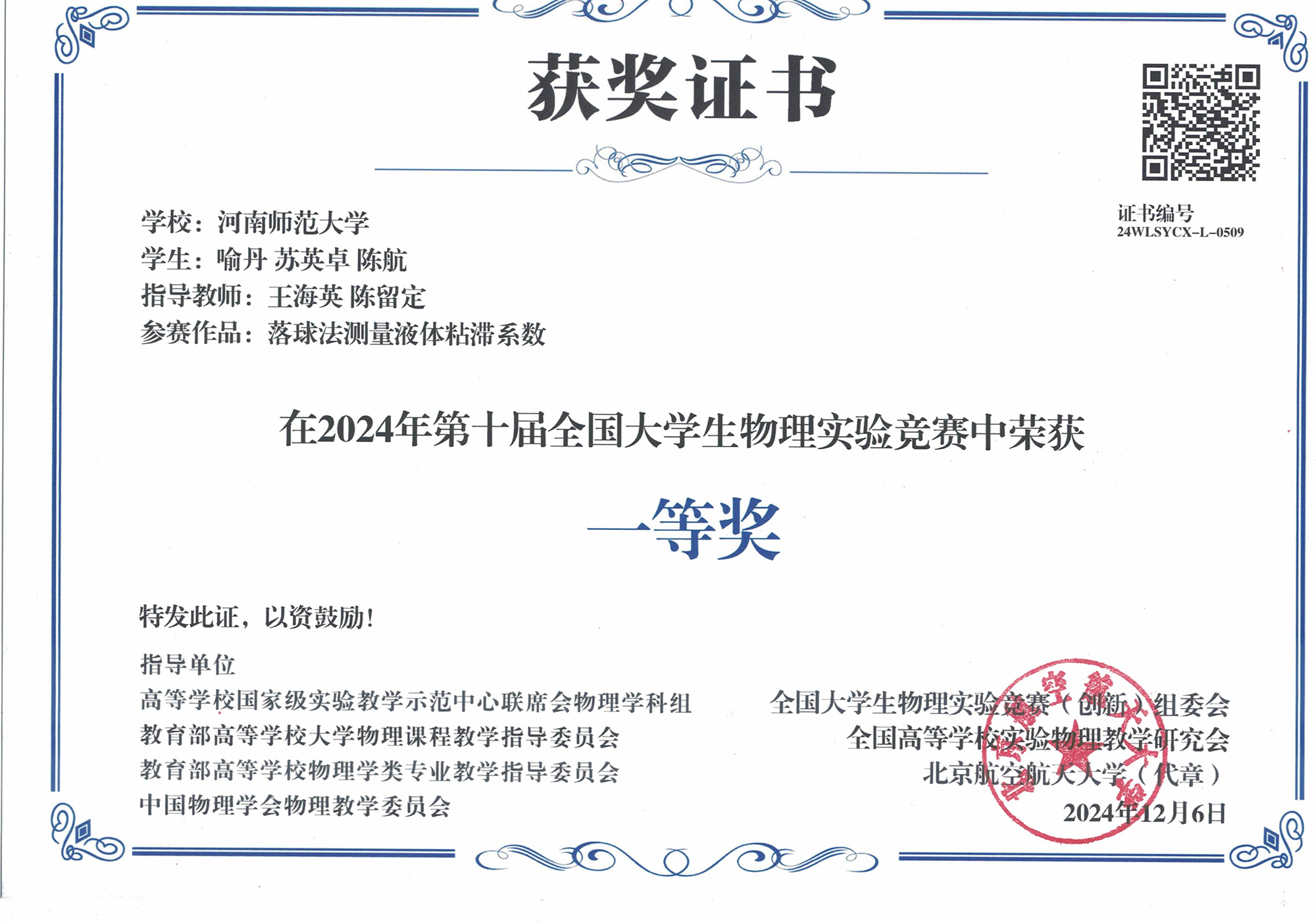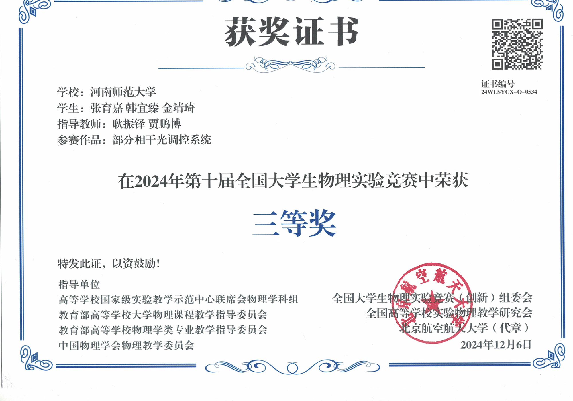 我院师生在第十届全国大学生物理实验竞赛中获奖